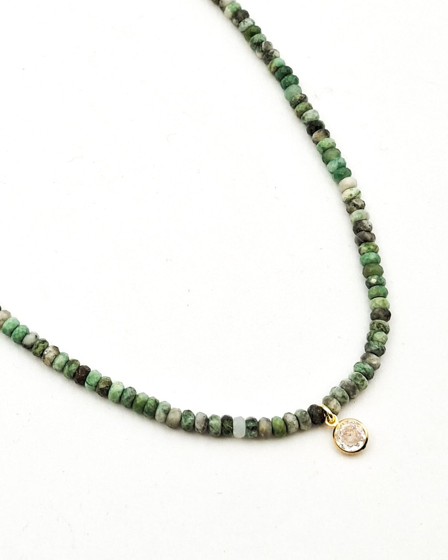 שרשרת קצרה ועדינה מאבנים טבעיות קטנטנות בגוונים בהירים של ירוק ותליון של זירקון עגול. ניתן לענוד לבד או בשילוב שרשראות נוספות למראה שכבות. האלמנטים בשרשרת בציפוי ישראלי איכותי של זהב 24 קראט. הפריט מגיע ארוז למתנה ועם אחריות לשנה. ניתן להוסיף ברכה אישית ופתק החלפה.
