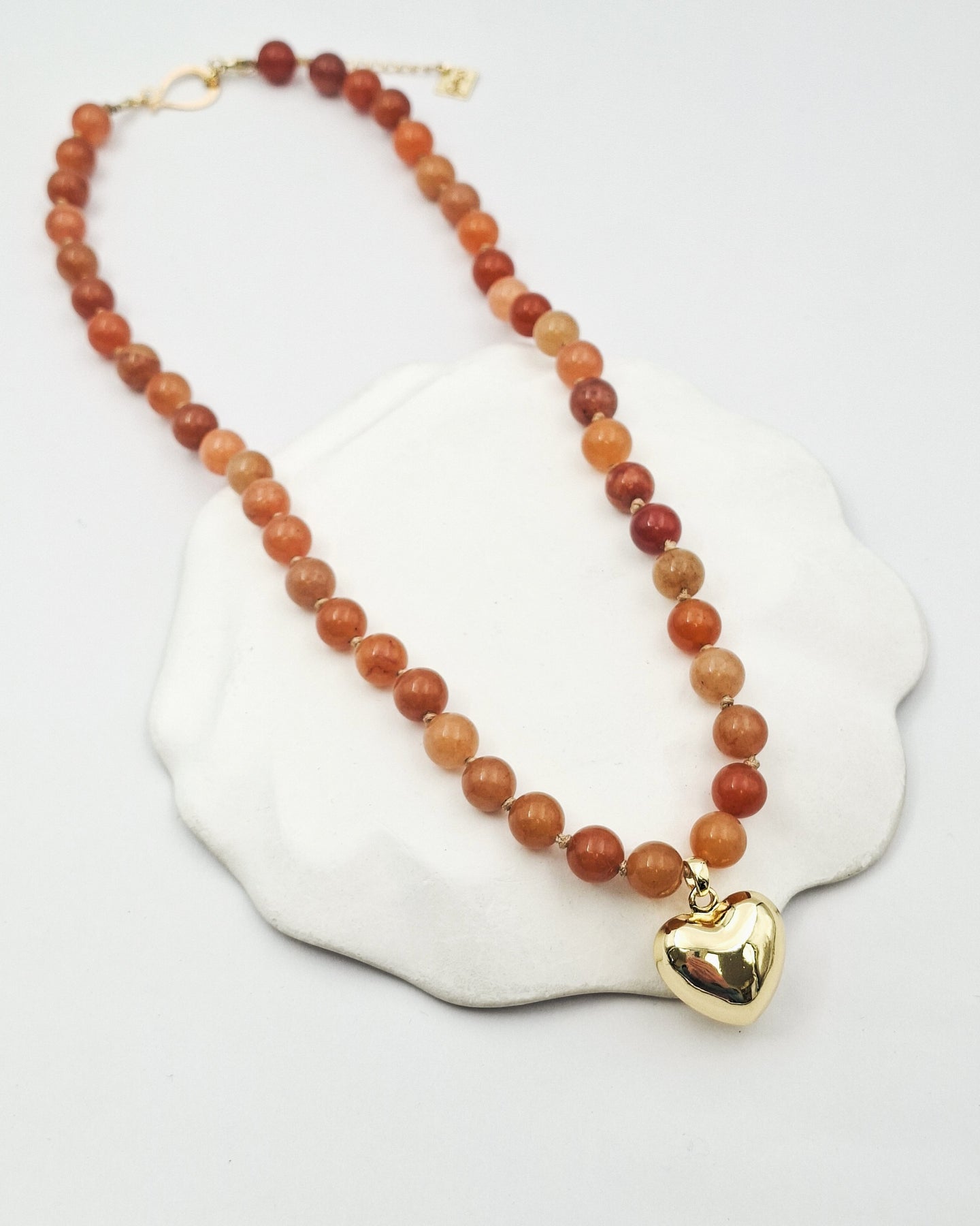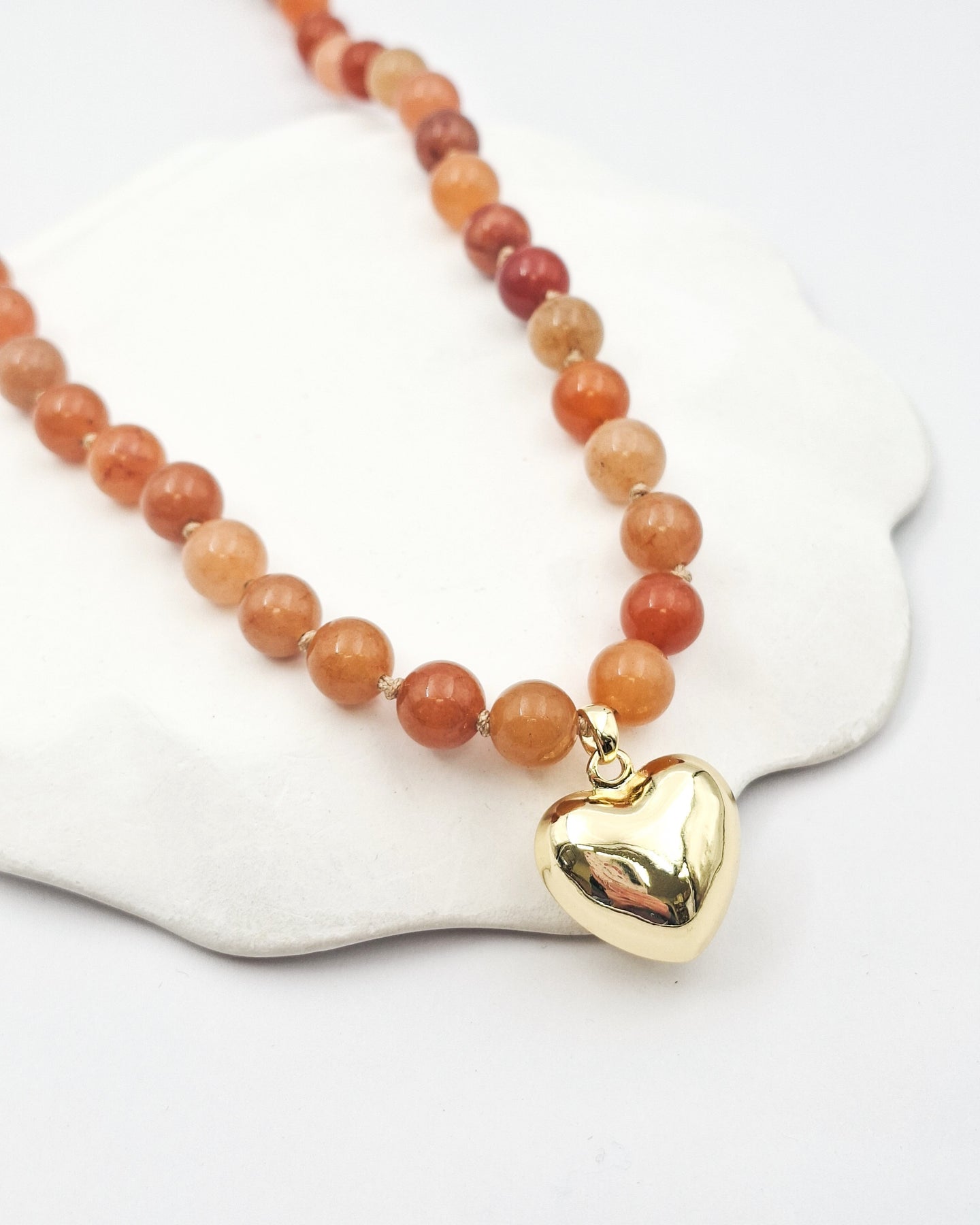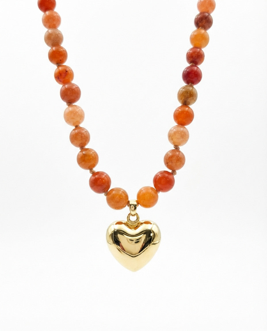 שרשרת קצרה מאבני קוורץ בגווני כתמתם ותליון לב בעל נפח. האלמנטים בשרשרת בציפוי ישראלי איכותי של זהב 24 קראט. הפריט מגיע ארוז למתנה ועם אחריות לשנה. ניתן להוסיף ברכה אישית ופתק החלפה.