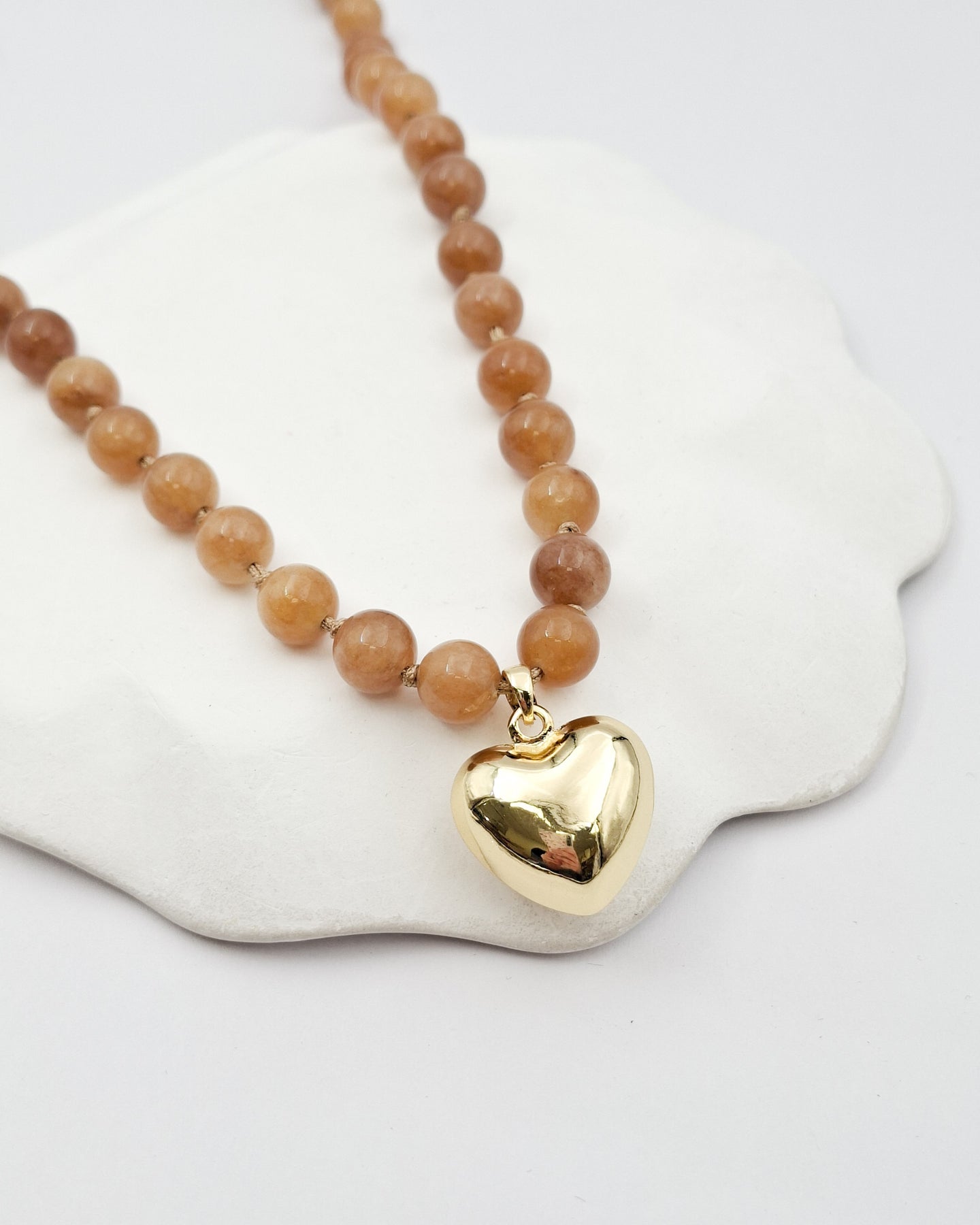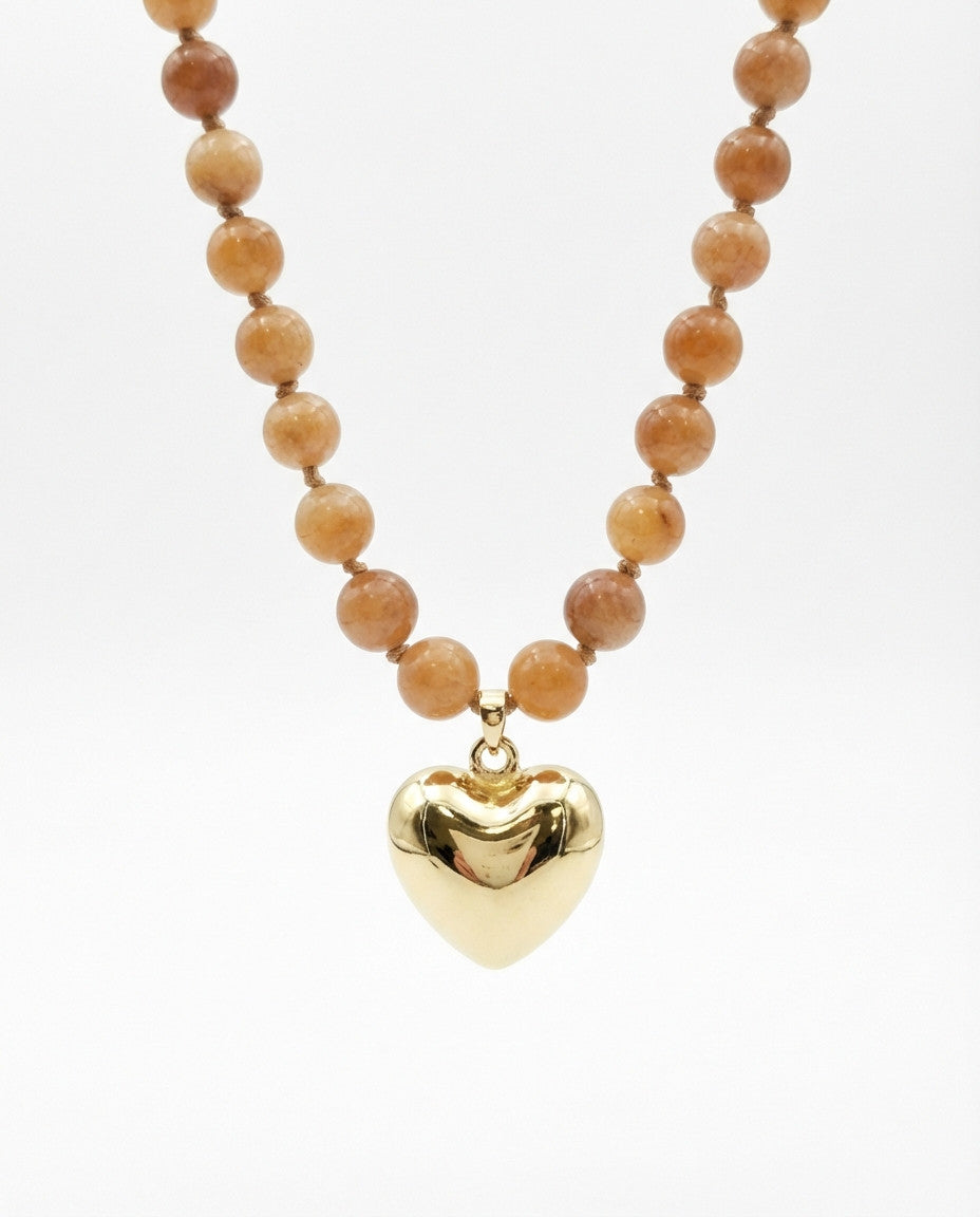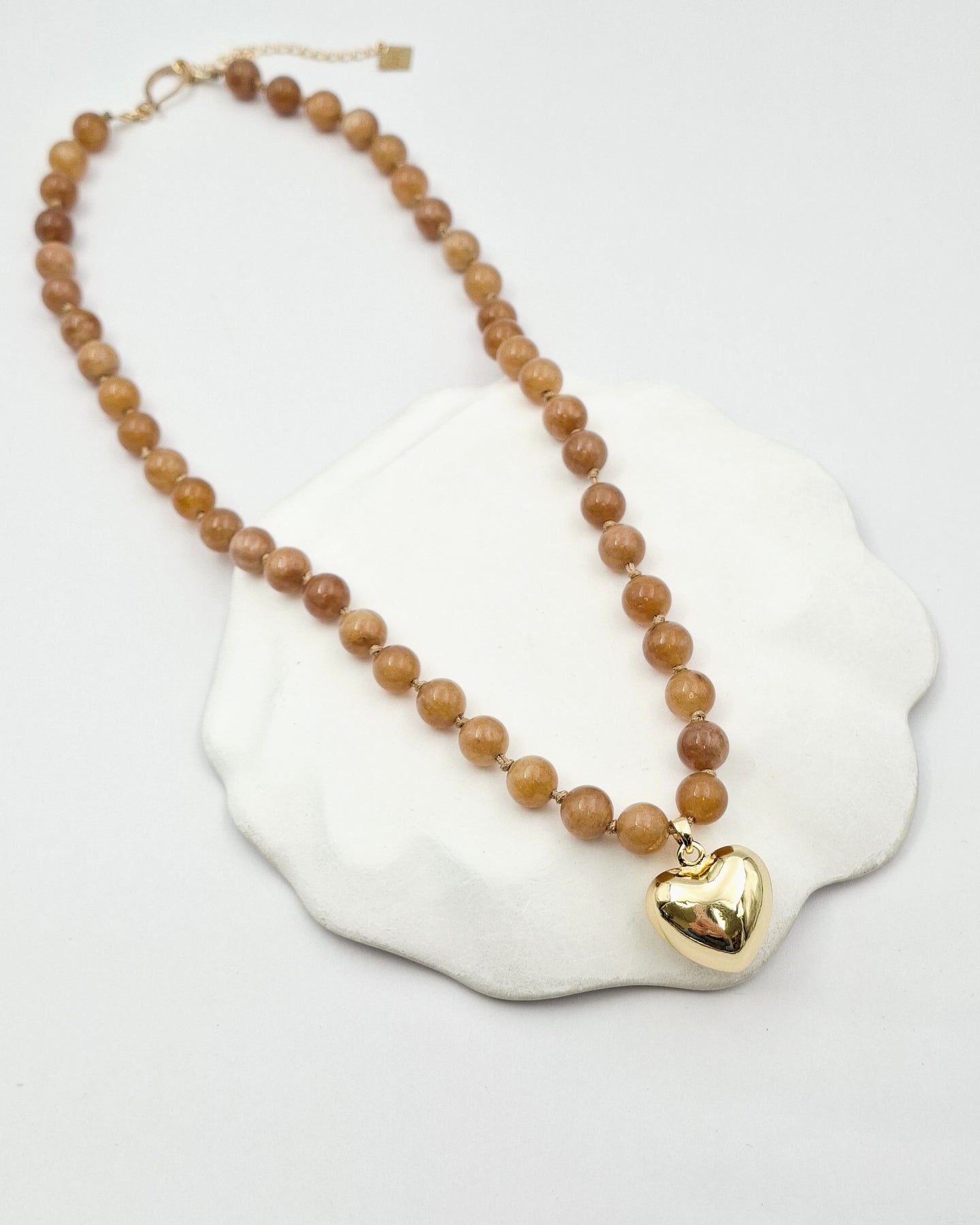 שרשרת קצרה מאבני קוורץ בגווני חום ותליון לב בעל נפח. האלמנטים בשרשרת בציפוי ישראלי איכותי של זהב 24 קראט. הפריט מגיע ארוז למתנה ועם אחריות לשנה. ניתן להוסיף ברכה אישית ופתק החלפה.