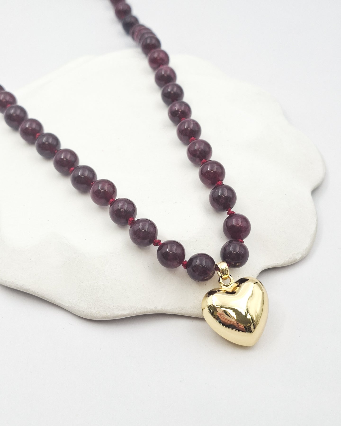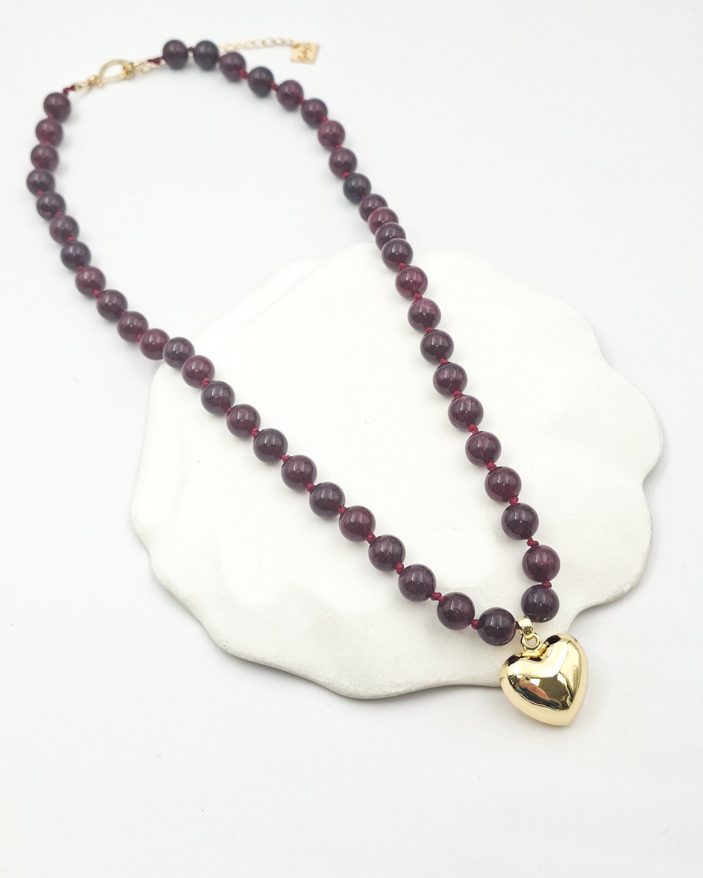 שרשרת קצרה מאבני קוורץ בגוון בורדו יין ותליון לב בעל נפח. האלמנטים בשרשרת בציפוי ישראלי איכותי של זהב 24 קראט. הפריט מגיע ארוז למתנה ועם אחריות לשנה. ניתן להוסיף ברכה אישית ופתק החלפה.