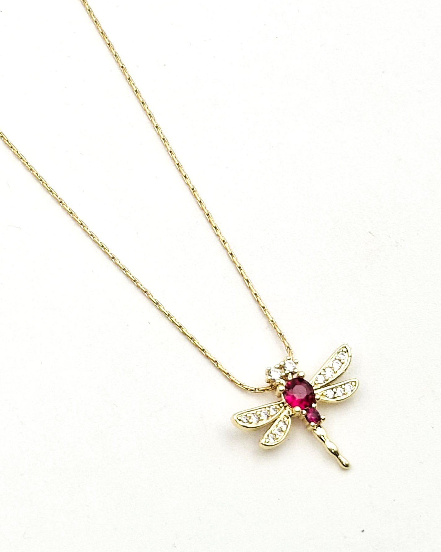 שרשרת קצרה בציפוי ישראלי איכותי והיפואלרגני של זהב 24 קראט עם תליון של שפירית משובץ זירקונים שקופים וורודים.