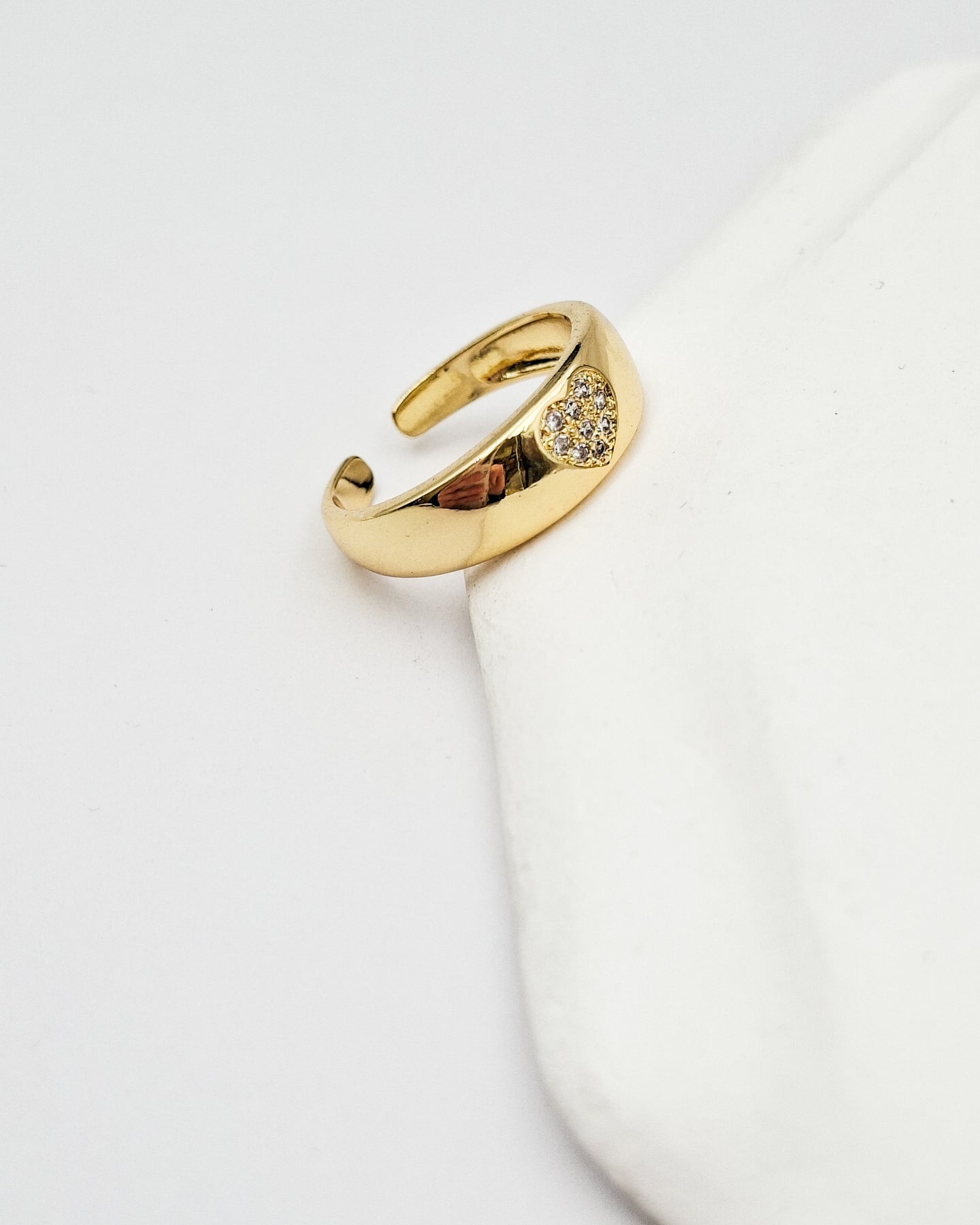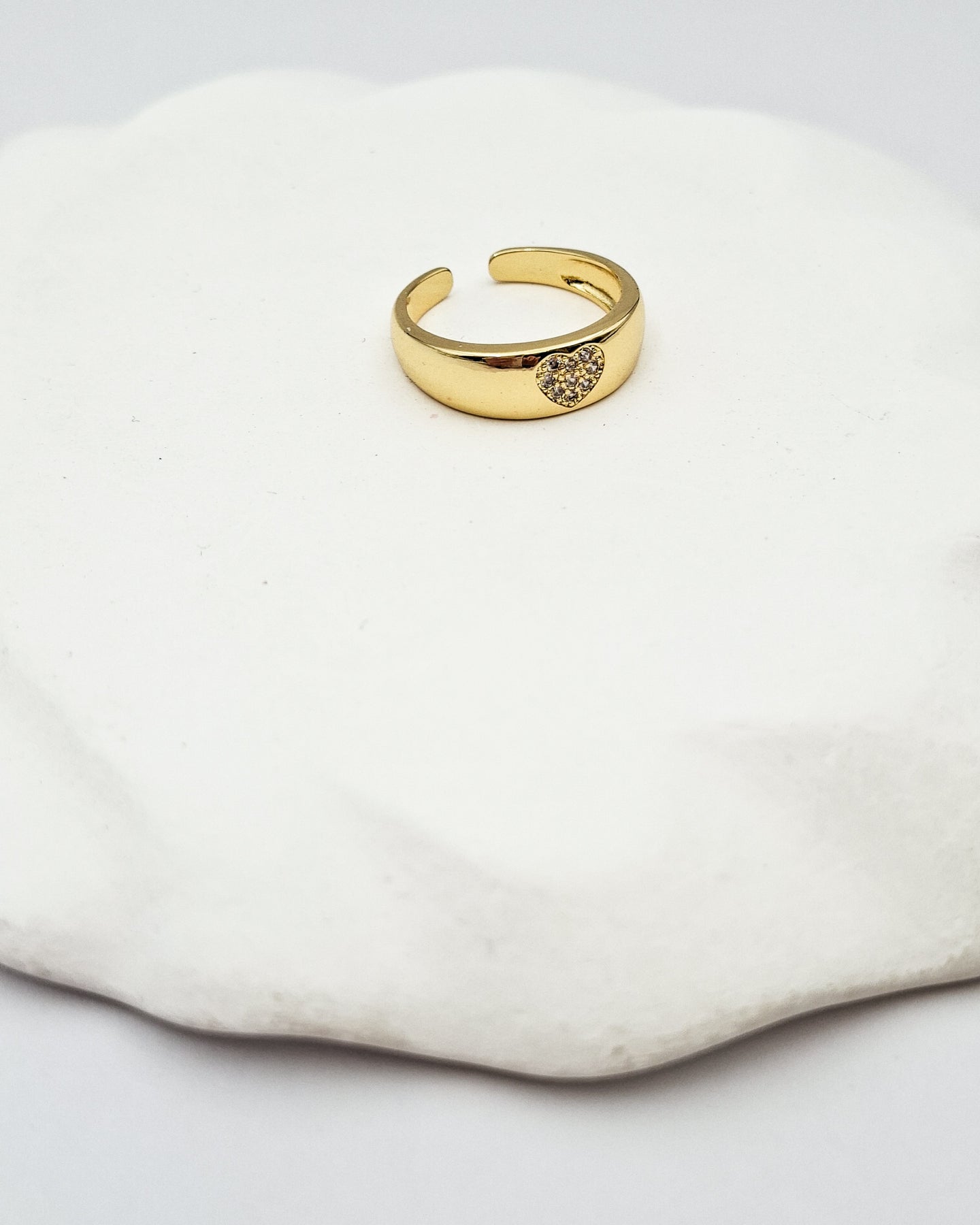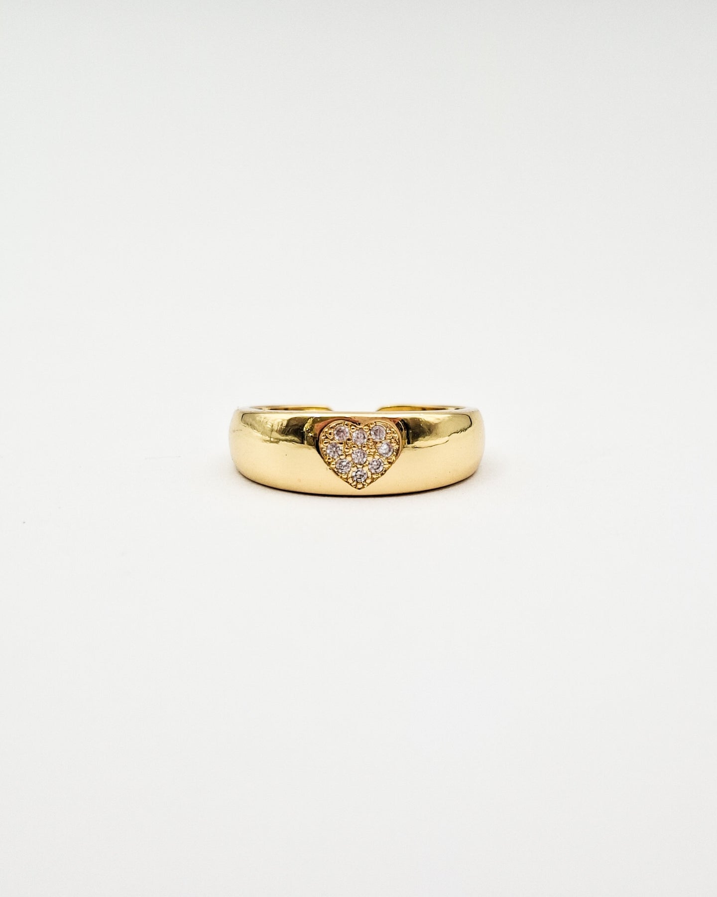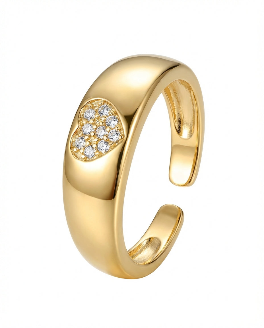 טבעת אלגנטית עם זירקונים קטנטנים שקופים משובצים בצורת לב במרכזה ובסיס המתכוונן לכל מידה. הטבעת בציפוי ישראלי איכותי והיפואלרגני של זהב 24 קראט. הפריט מגיע ארוז למתנה ועם אחריות לשנה. ניתן להוסיף ברכה אישית ופתק החלפה.