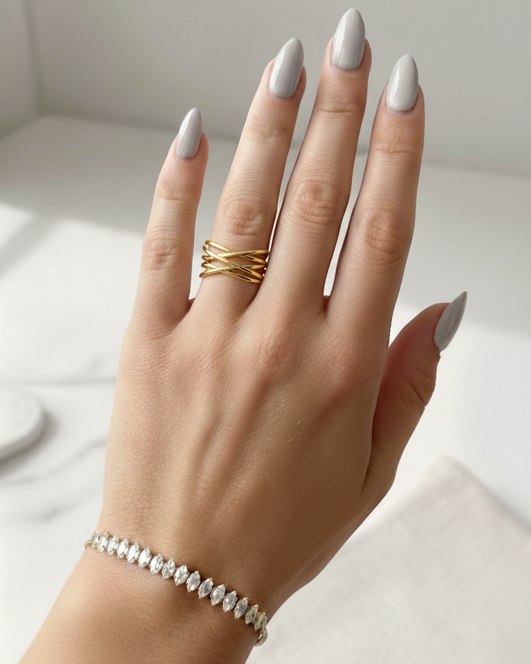 טבעת מקסימה בדוגמת חוטים מצטלבים ובסיס המתכוונן לכל מידה. הטבעת בציפוי ישראלי איכותי והיפואלרגני של זהב 24 קראט. הפריט מגיע ארוז למתנה ועם אחריות לשנה. ניתן להוסיף ברכה אישית ופתק החלפה.