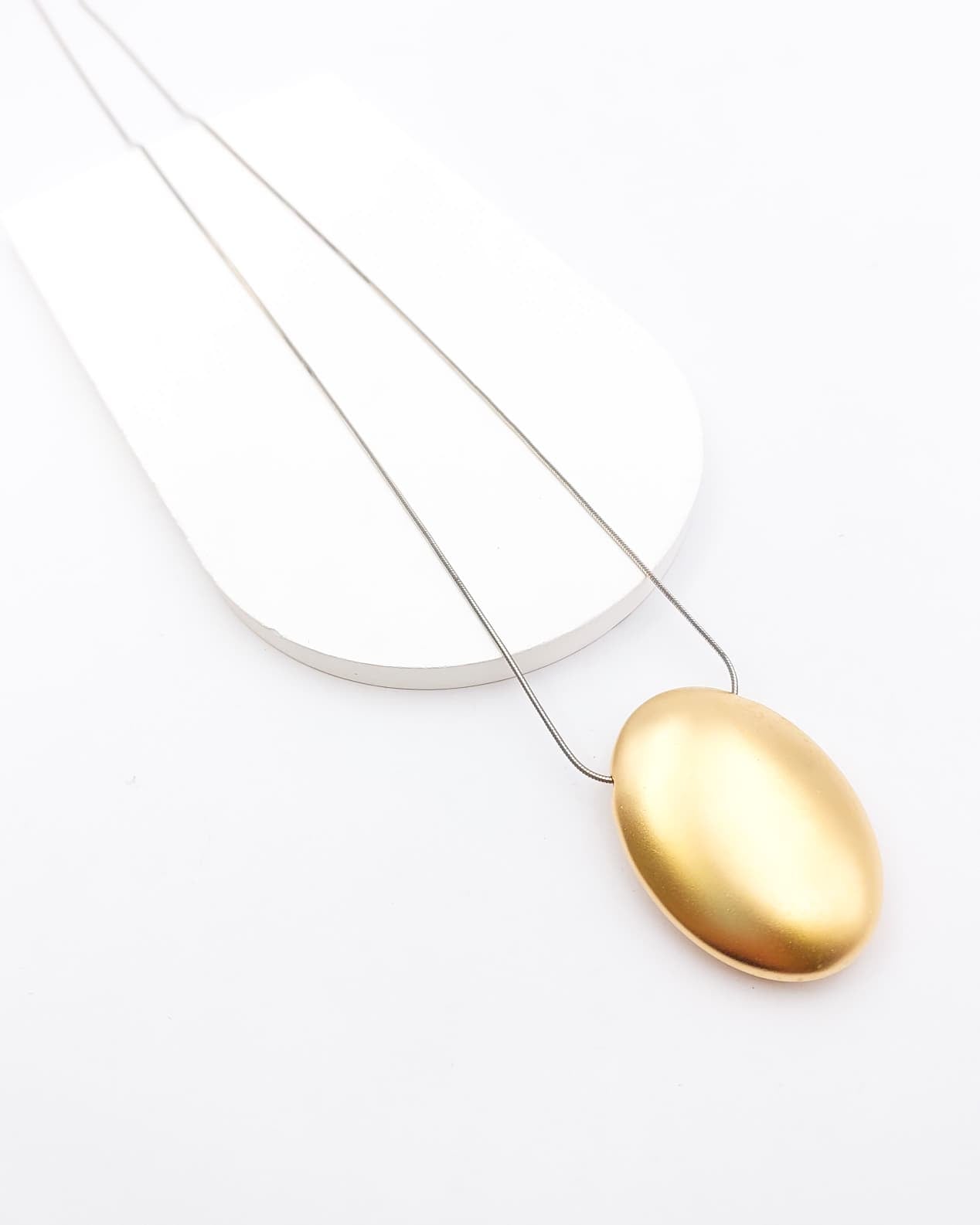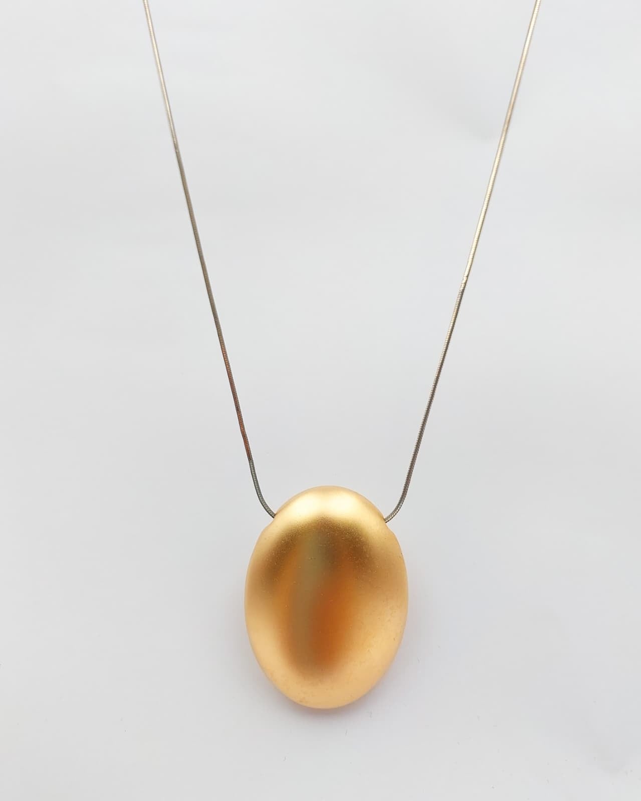 שרשרת בעיצוב נקי ועדין אך עם נוכחות. משדרגת מאוד כל הופעה. השרשרת בגוון אפור מנצנץ ואלמנט אובאלי בציפוי ישראלי איכותי של זהב 24 קראט ובגימור מט. הפריט מגיע ארוז למתנה ועם אחריות לשנה. ניתן להוסיף ברכה אישית ופתק החלפה.