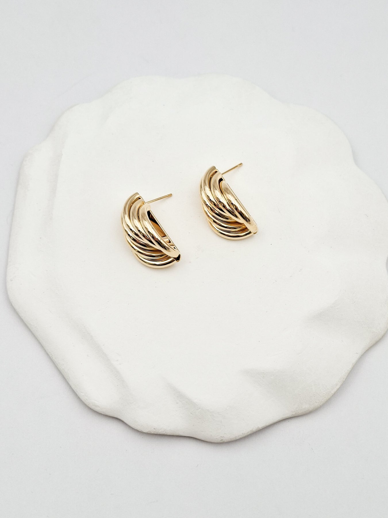 עגילים צמודים בדוגמת פסים המתחברים האחד לשני בקצה.