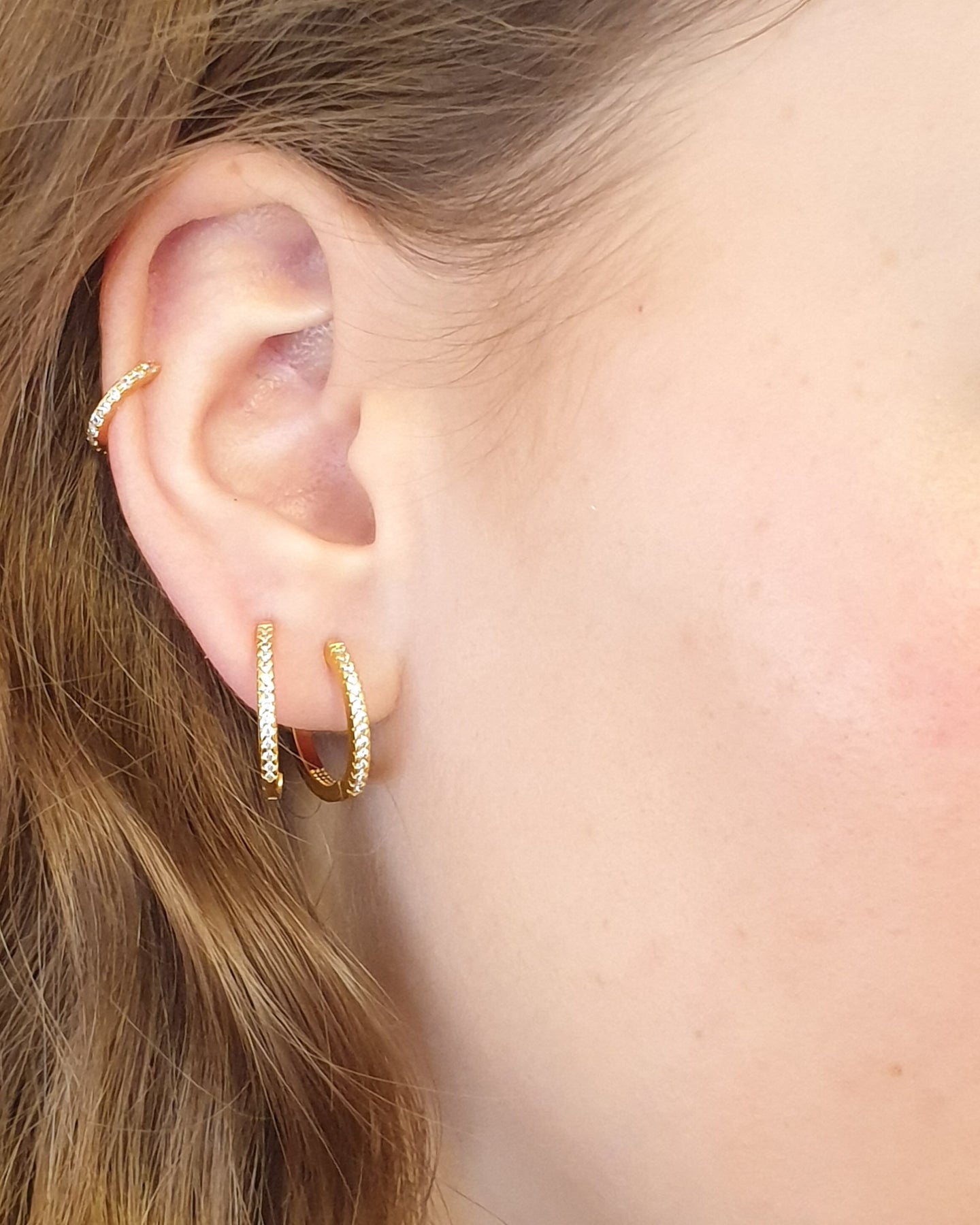 עגילי חישוק קלאסיים בשיבוץ זירקונים שקופים. העגילים בציפוי ישראלי איכותי של זהב 24 קראט או כסף, לבחירתך. הפריט מגיע ארוז למתנה ועם אחריות לשנה. ניתן להוסיף ברכה אישית ופתק החלפה