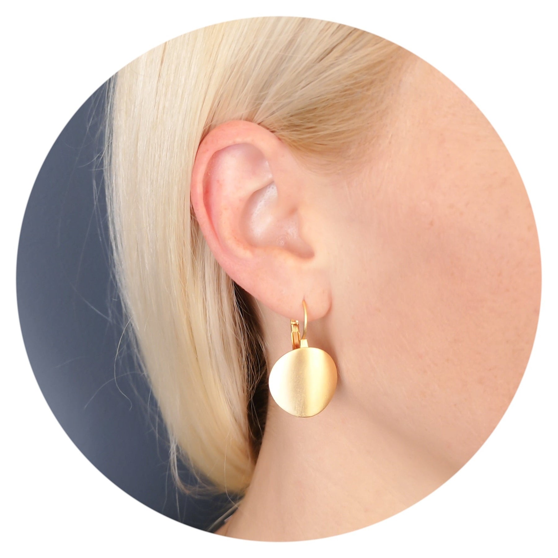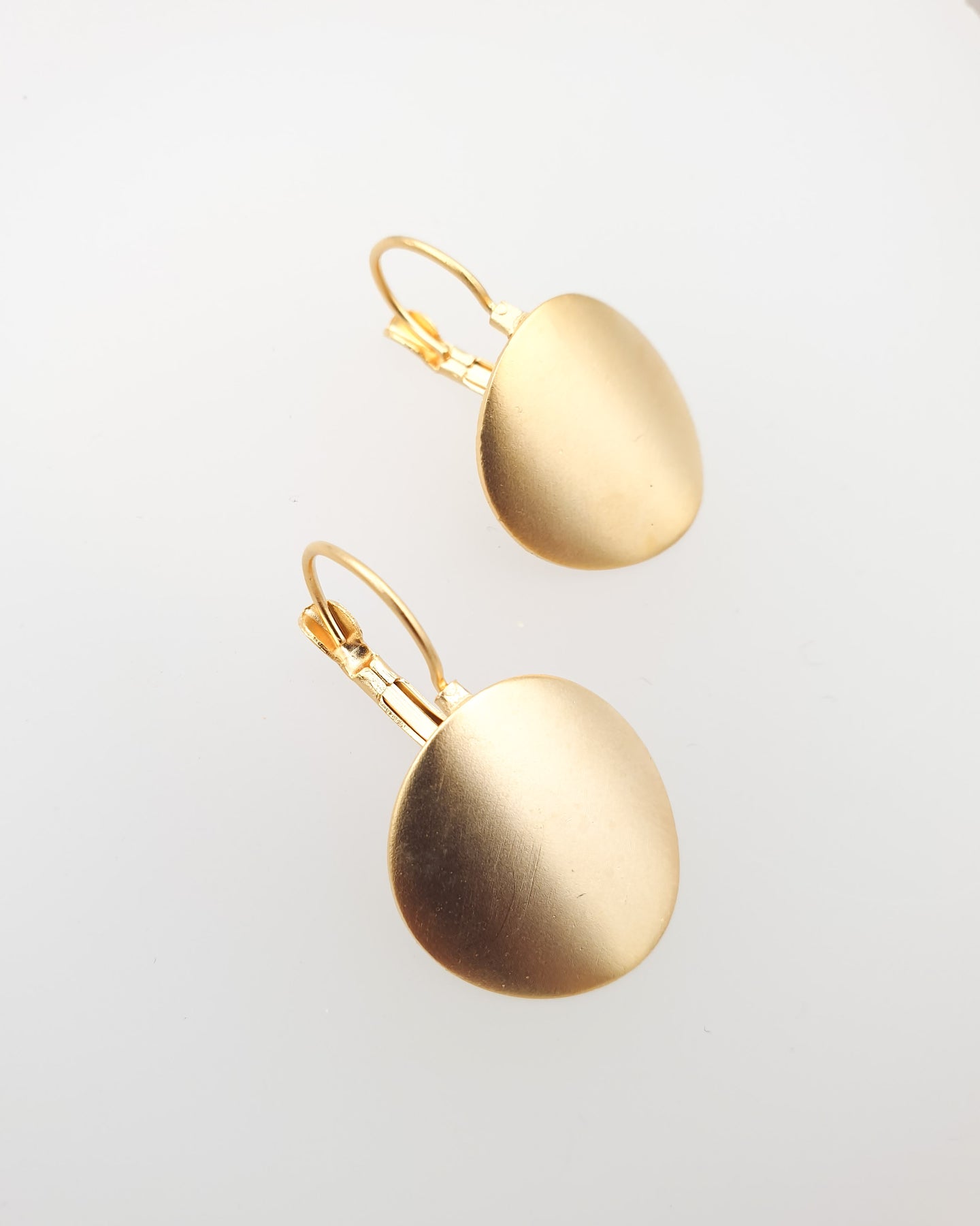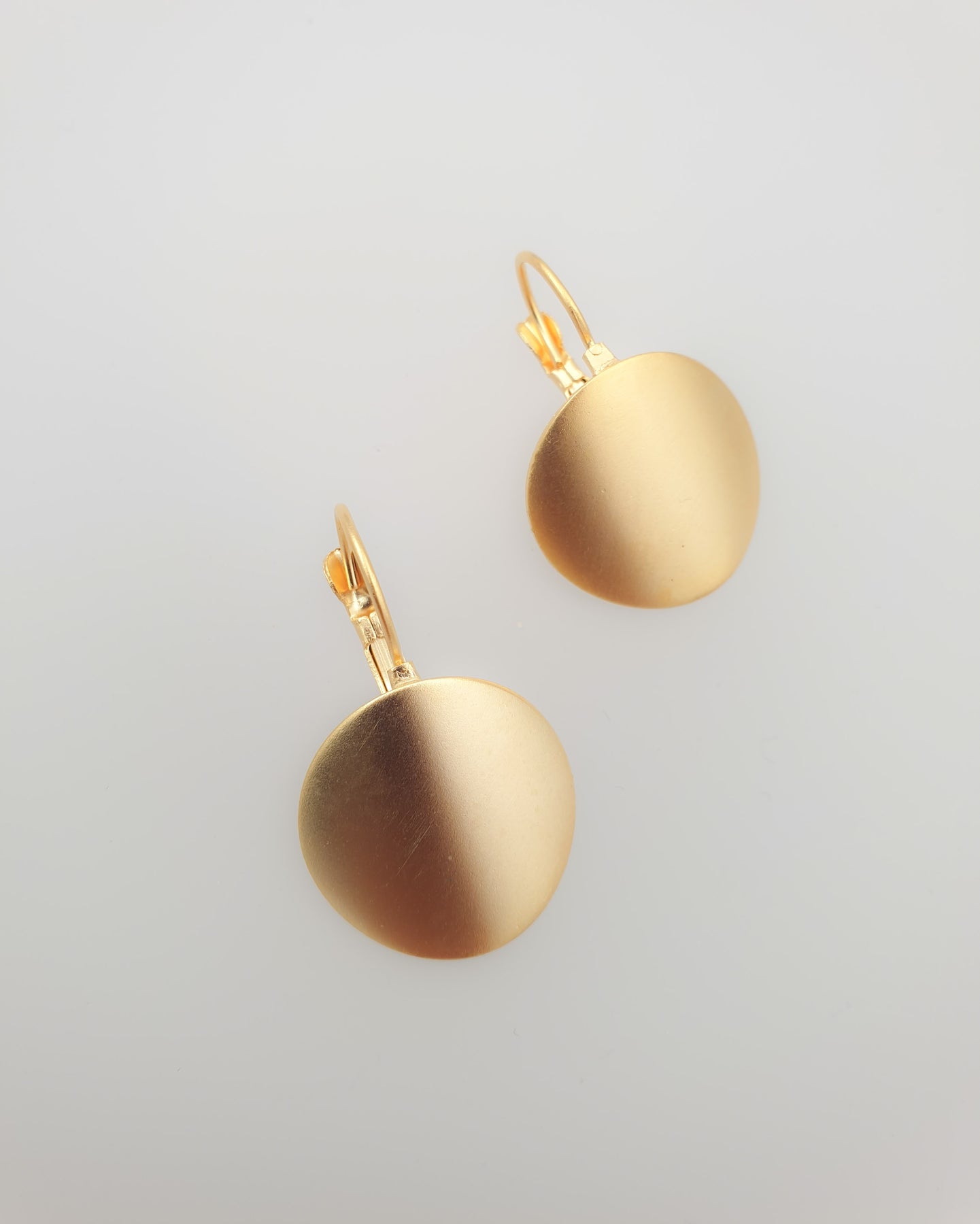 עגילים תלויים עם תליון בצורת עיגול מעוקל קלות. העגילים בציפוי ישראלי איכותי של זהב 24 קראט. הפריט מגיע ארוז למתנה ועם אחריות לשנה. ניתן להוסיף ברכה אישית ופתק החלפה.