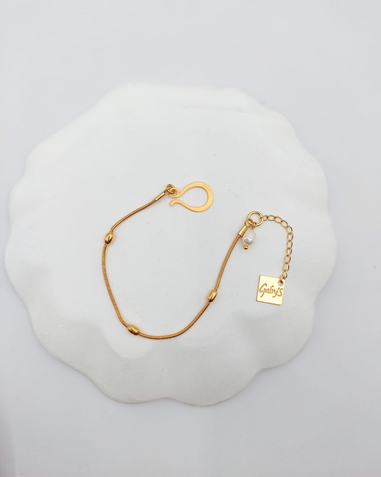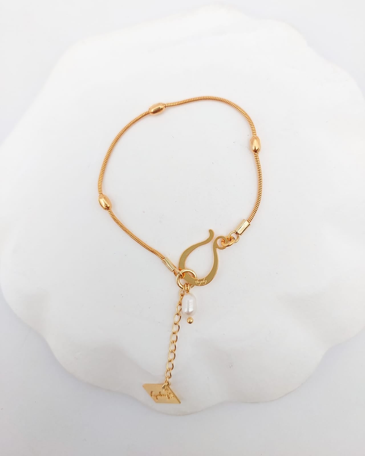 צמיד שרשרת טיפות מרווחות עם תליון פנינה אמיתית. הצמיד בציפוי ישראלי איכותי של זהב 24 קראט. הפריט מגיע ארוז למתנה ועם אחריות לשנה. ניתן להוסיף ברכה אישית ופתק החלפה.