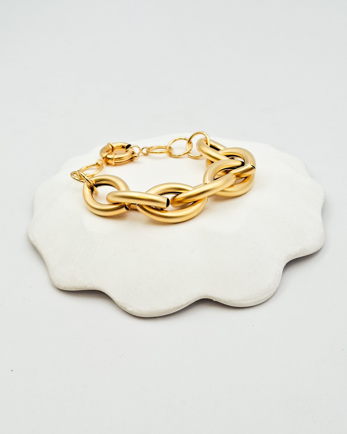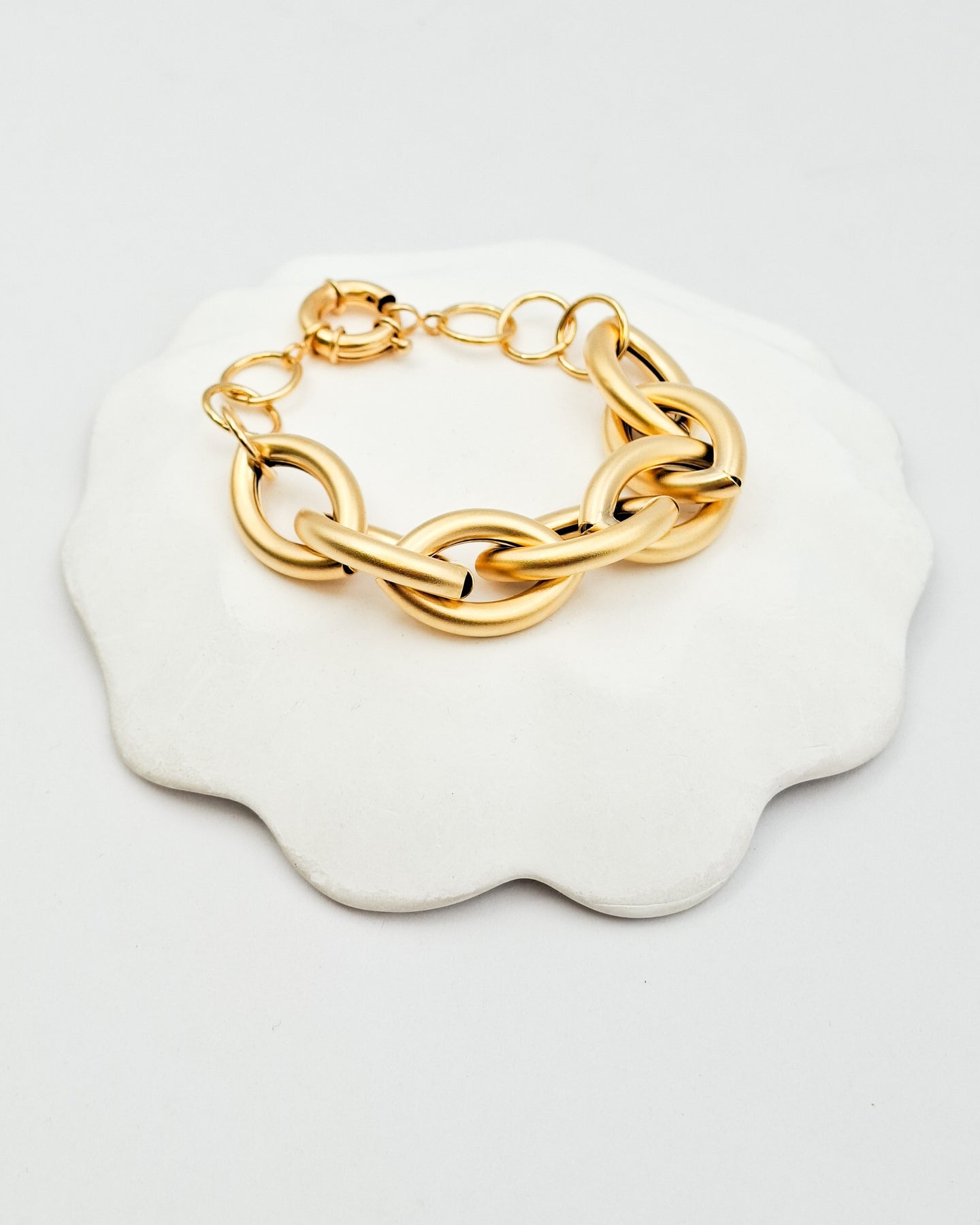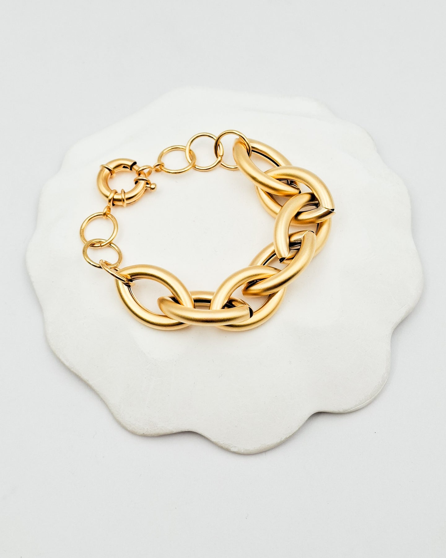 צמיד מדהים עשוי חוליות משני סוגים וסוגר דומיננטי. הצמיד בציפוי ישראלי איכותי של זהב 24 קראט, קל משקל ועם נוכחות מרשימה ביותר. הפריט מגיע ארוז למתנה ועם אחריות לשנה. ניתן להוסיף ברכה אישית ופתק החלפה.