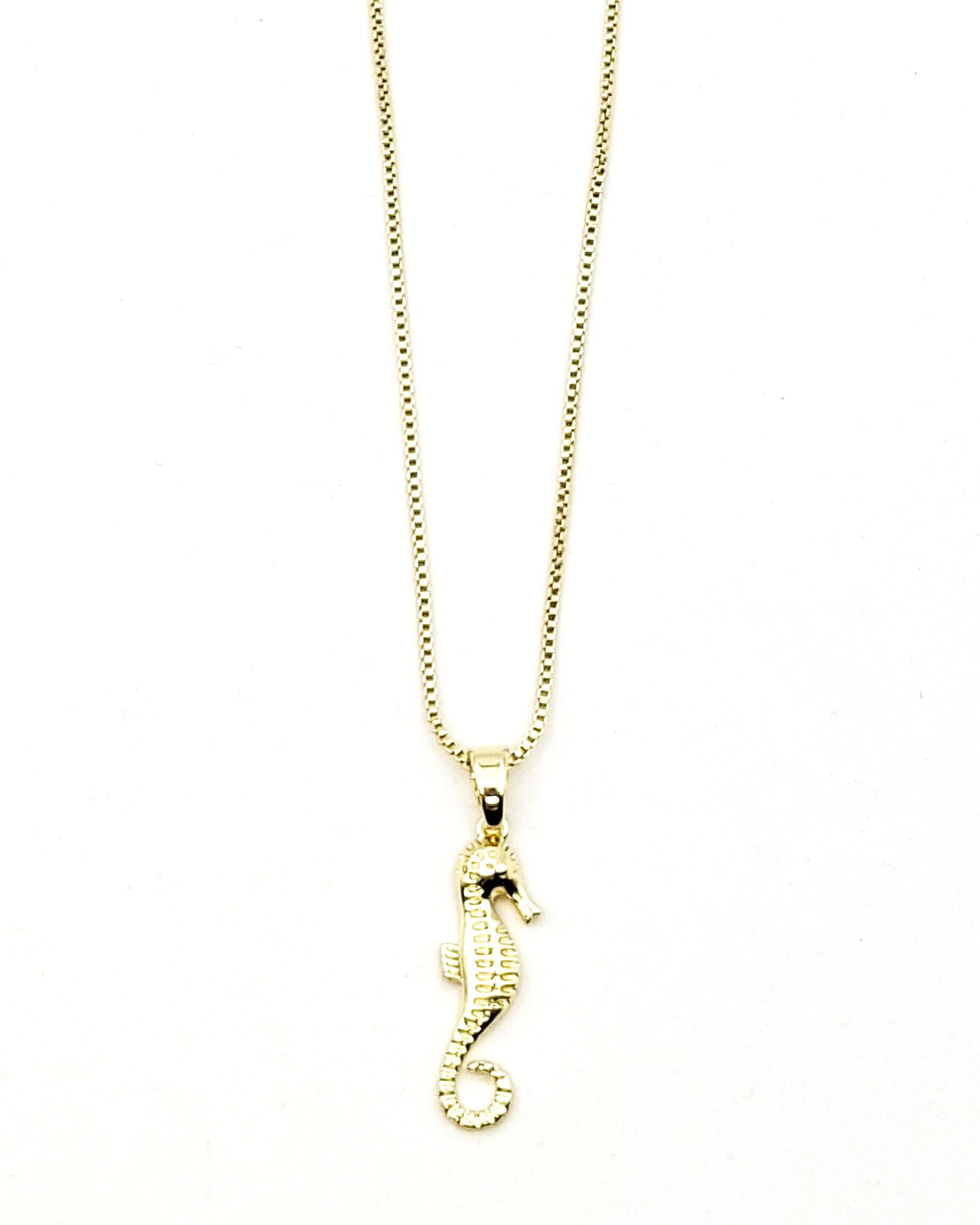 שרשרת קצרה בציפוי איכותי ישראלי של זהב 24 קראט עם תליון בצורת סוסון ים.