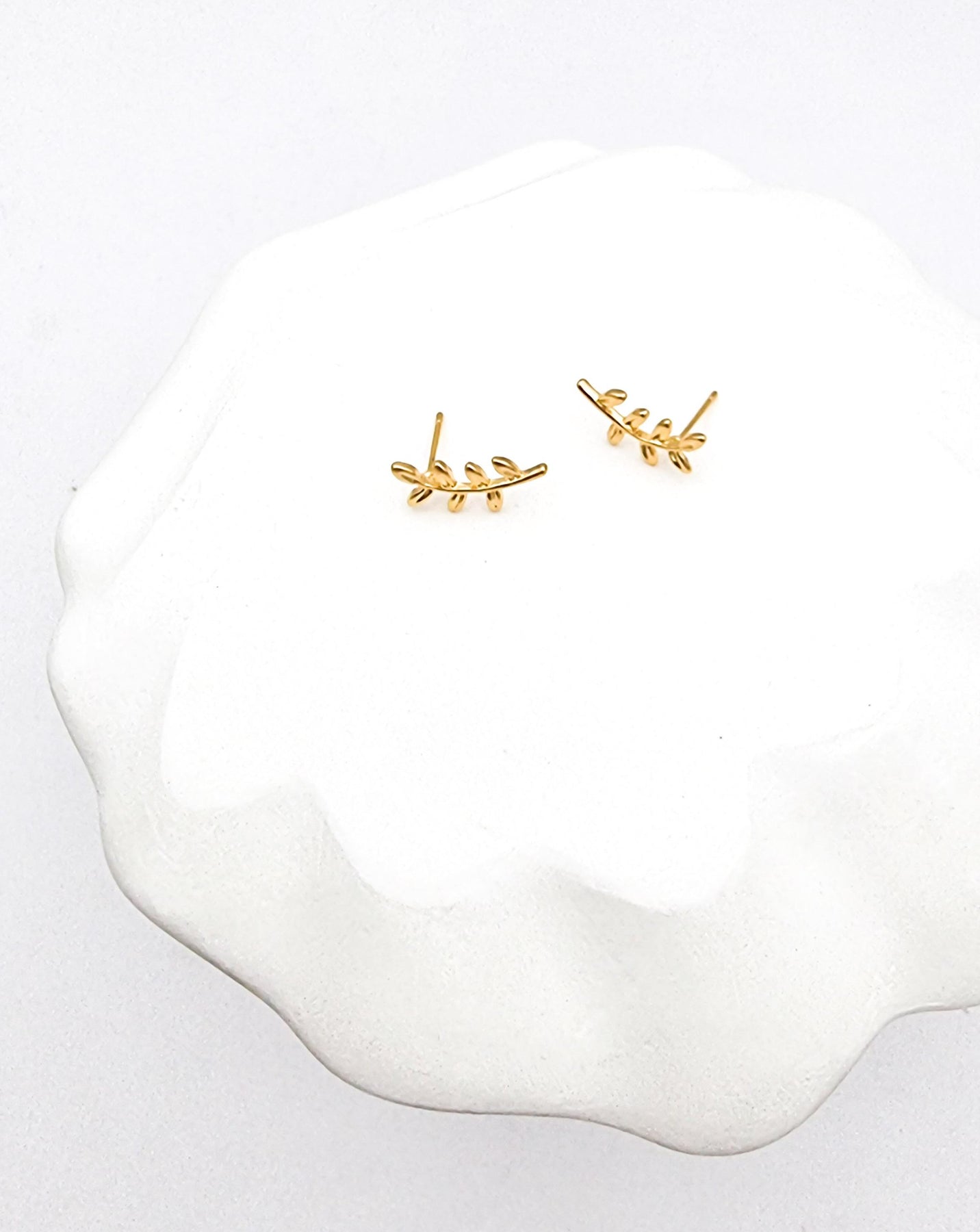 עגילים צמודים קטנים בצורת ענף. העגילים בציפוי ישראלי איכותי והיפואלרגני של זהב 24 קראט בגימור מבריק. הפריט מגיע ארוז למתנה ועם אחריות לשנה. ניתן להוסיף ברכה אישית ופתק החלפה.