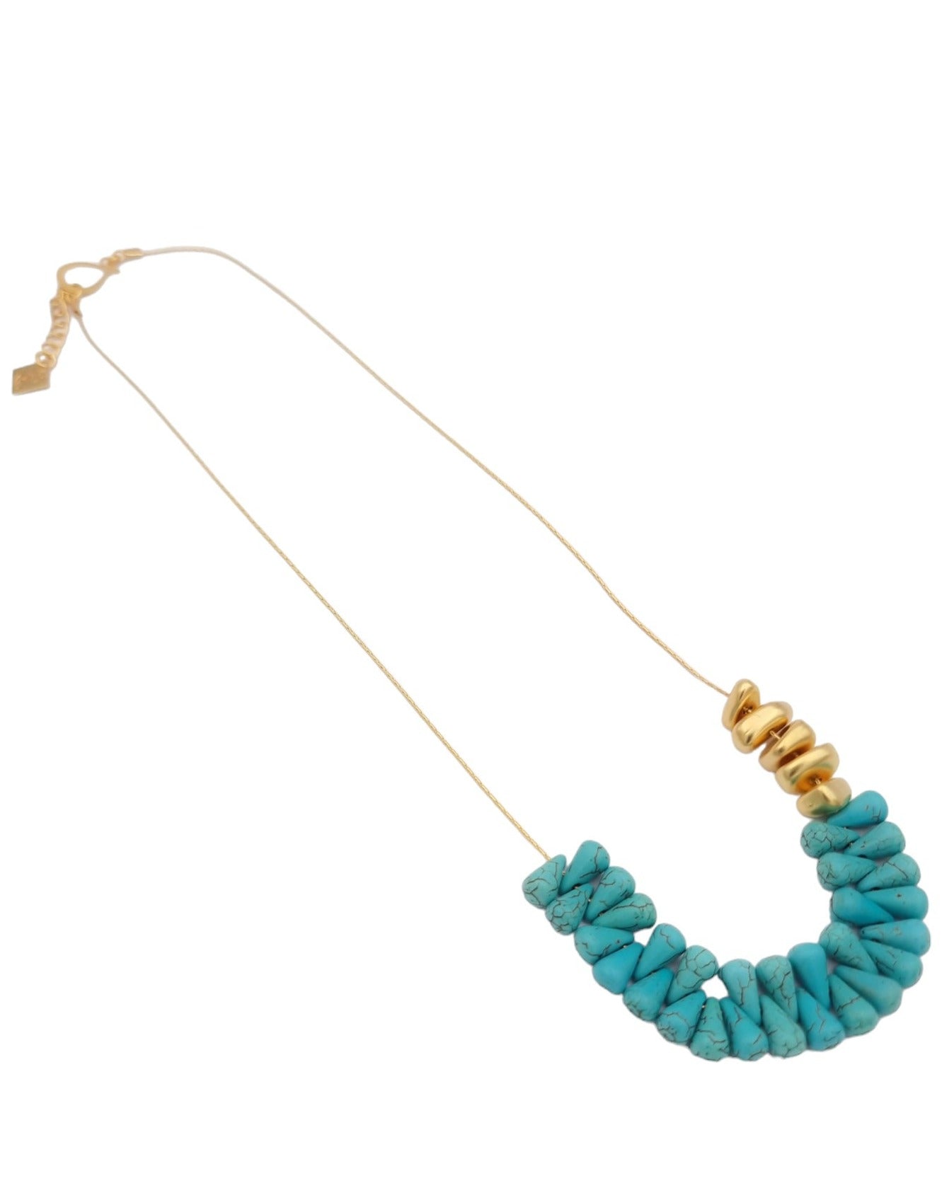 שרשרת קצרה עם אבני טורקיז אמיתי בצורת טיפות  בשילוב אלמנטים אסימטרים מצופים ציפוי ישראלי איכותי של זהב 24 קראט. הפריט מגיע ארוז למתנה ועם אחריות לשנה. ניתן להוסיף ברכה אישית ופתק החלפה.