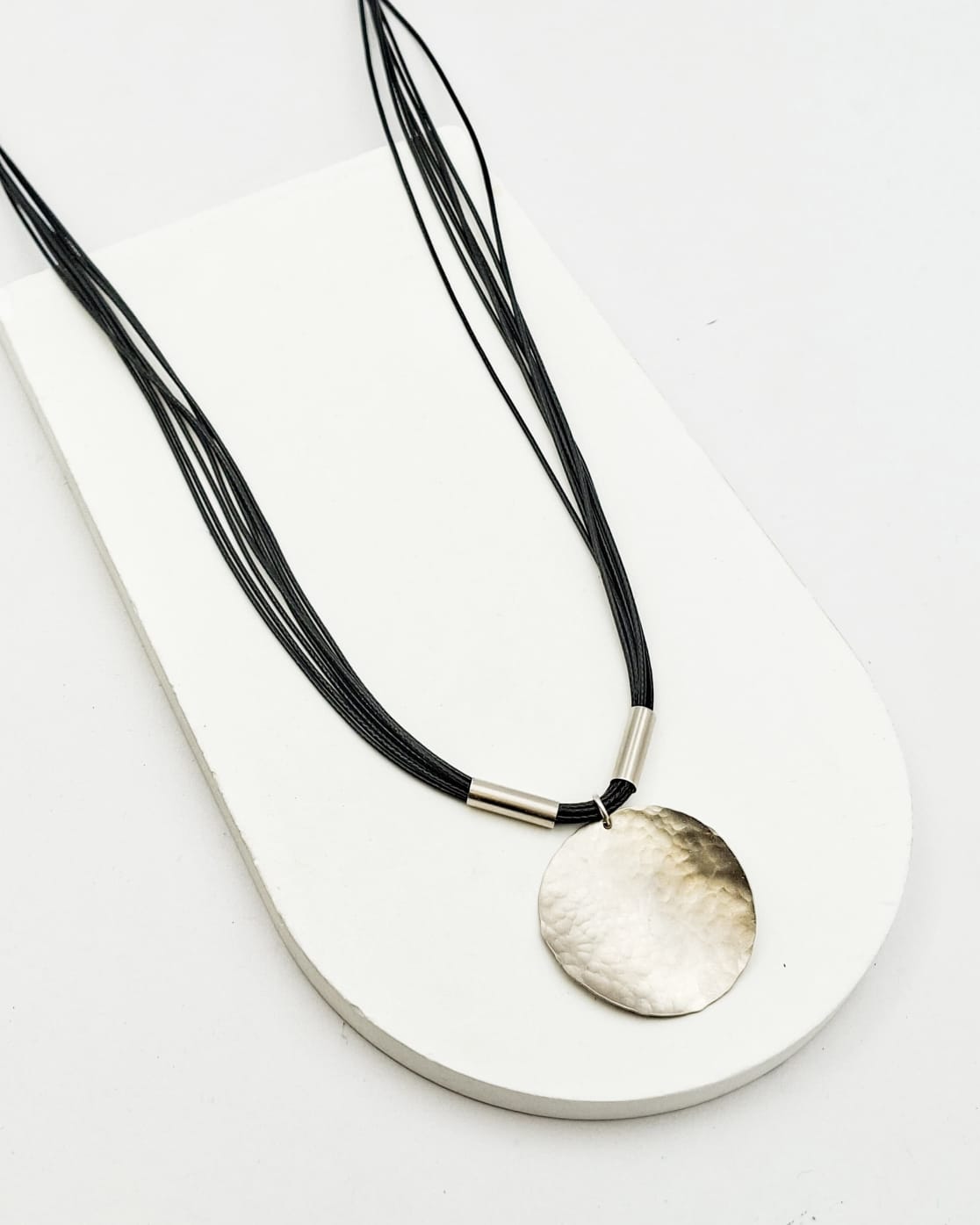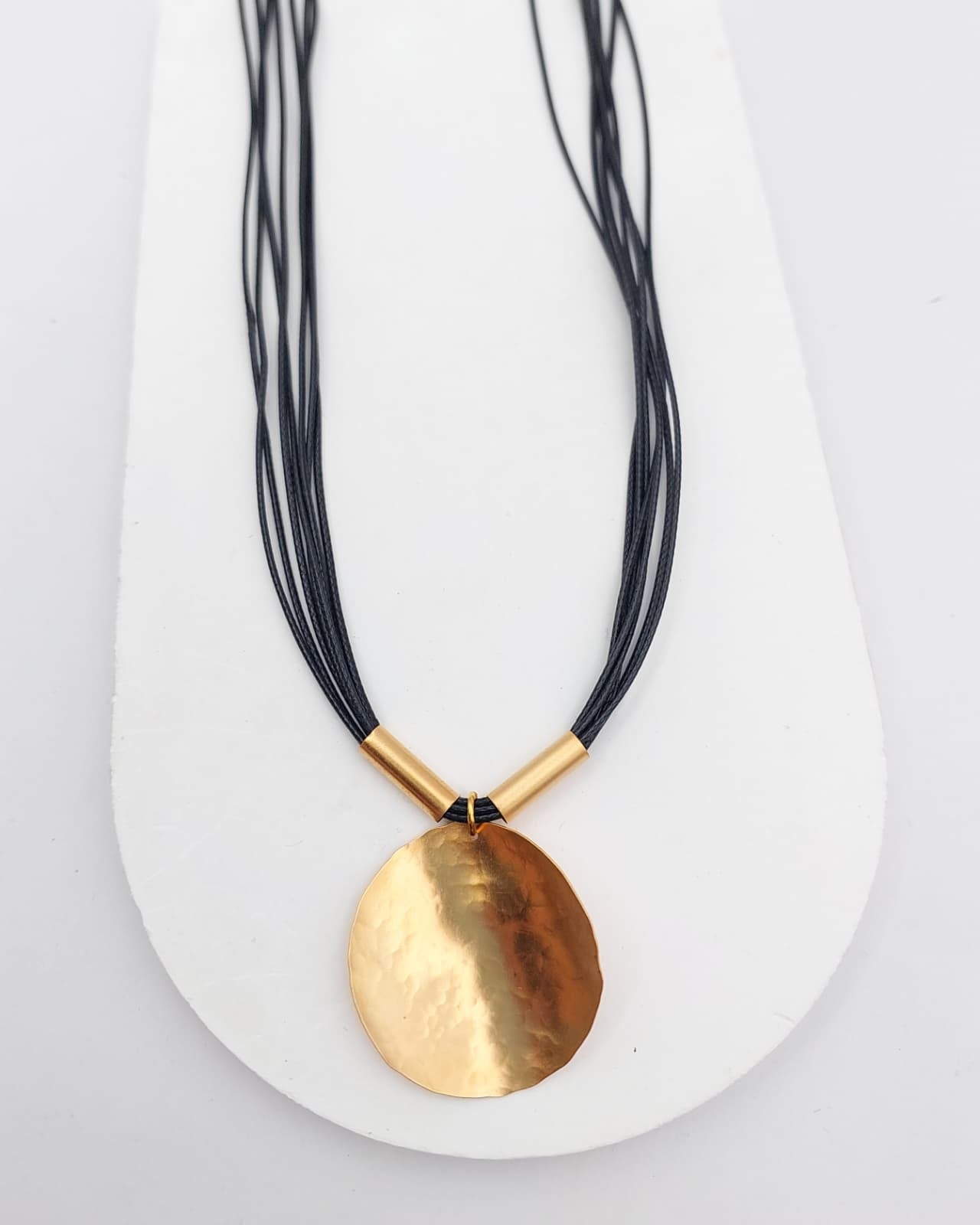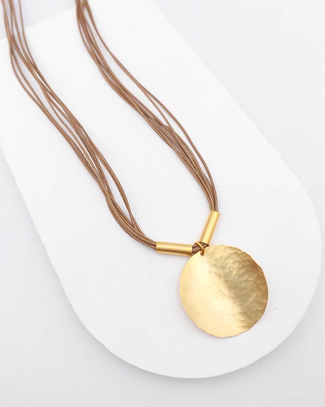 שרשרת ייחודית ובעלת נוכחות המורכבת ממקבץ חוטי כותנה ותליון מטבע מרוקע עשוי בעבודת יד. התליון והסוגר בציפוי ישראלי איכותי של זהב 24 קראט או כסף, לבחירתך. הפריט מגיע ארוז למתנה ועם אחריות לשנה. ניתן להוסיף ברכה אישית ופתק החלפה