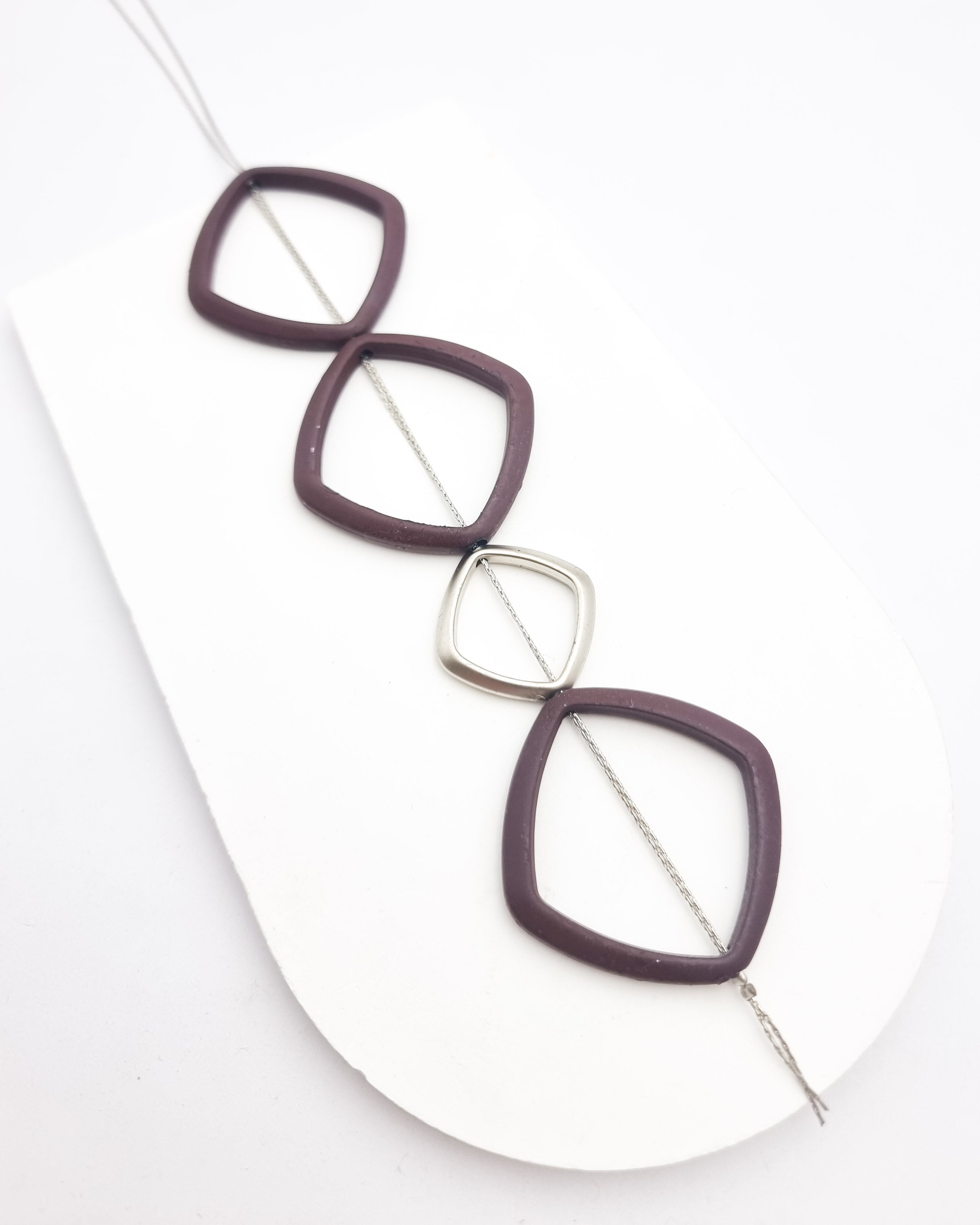 שרשרת קלאסית בצורת עניבה עם שלושה מעויינים חלולים בעלי נפח מסיליקון בצבע בורדו ומעויין קטן יותר בציפוי כסף. שרשרת שמשדרגת כל הופעה. השרשרת עצמה בציפוי ישראלי איכותי של כסף. הפריט מגיע ארוז למתנה ועם אחריות לשנה. ניתן להוסיף ברכה אישית ופתק החלפה