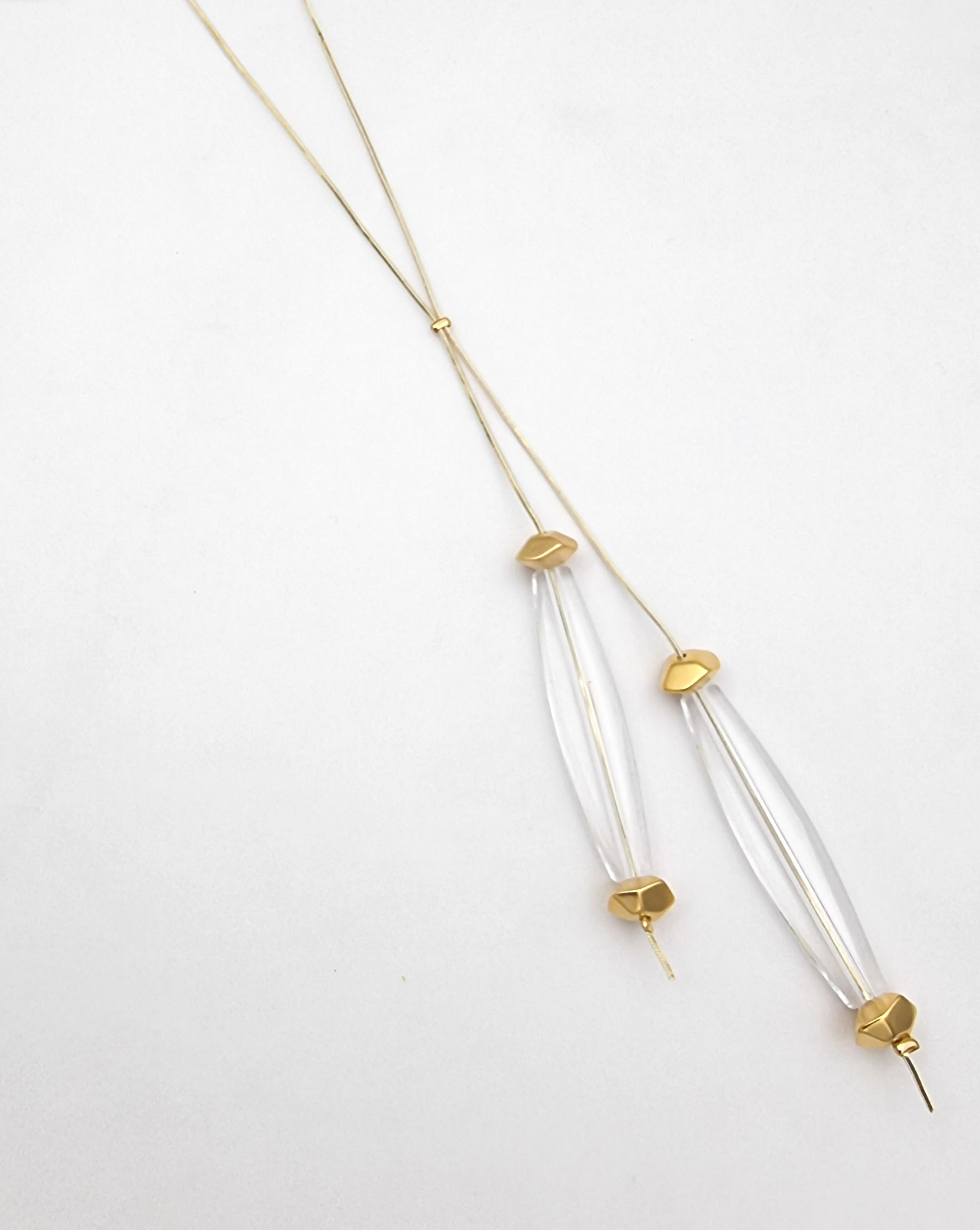 שרשרת בצורת עניבה בציפוי אופווייט מנצנץ עם אלמנטים אקריליים שקופים מוארכים ואלמנטים בצורת יהלום בציפוי ישראלי איכותי של זהב 24 קראט.