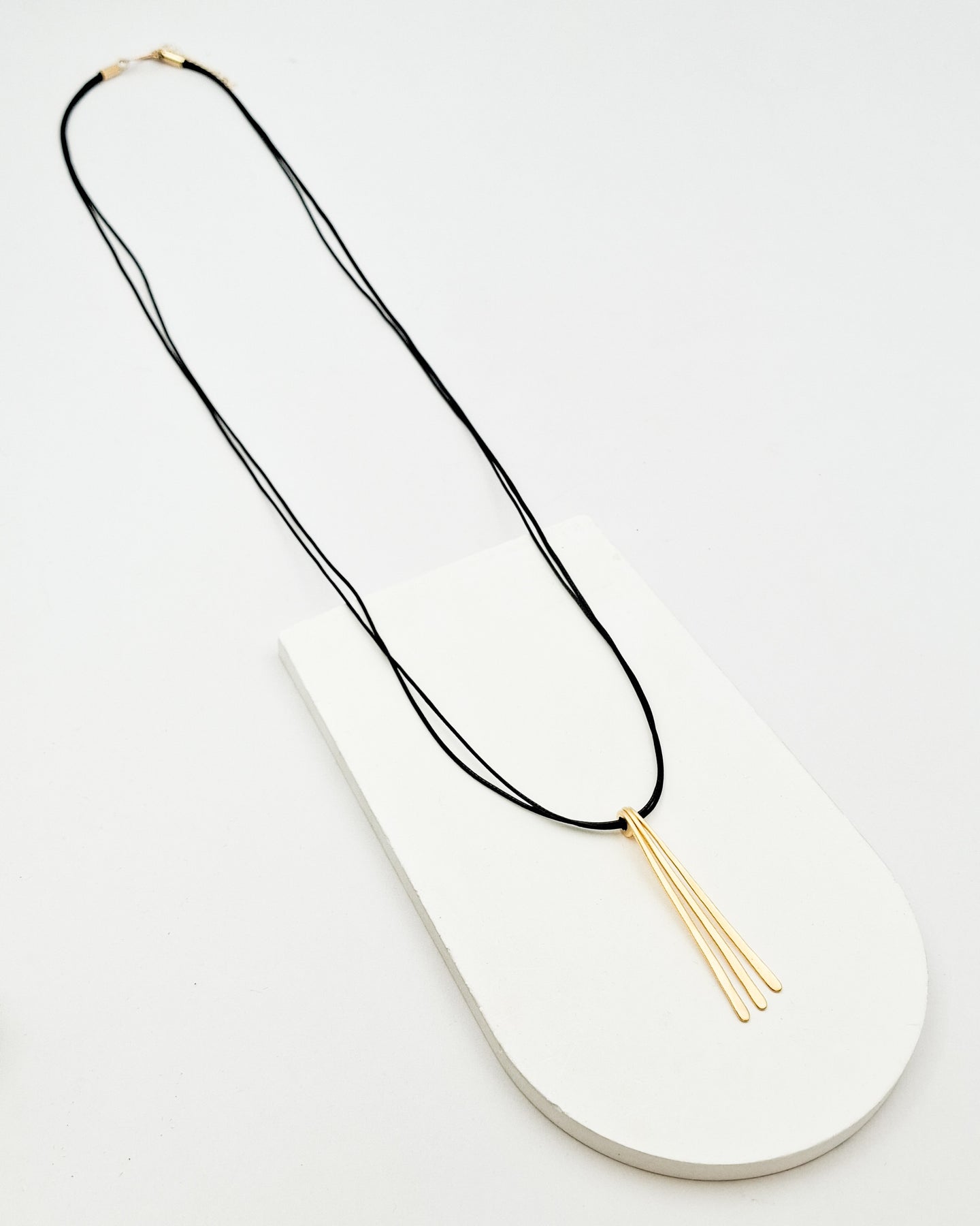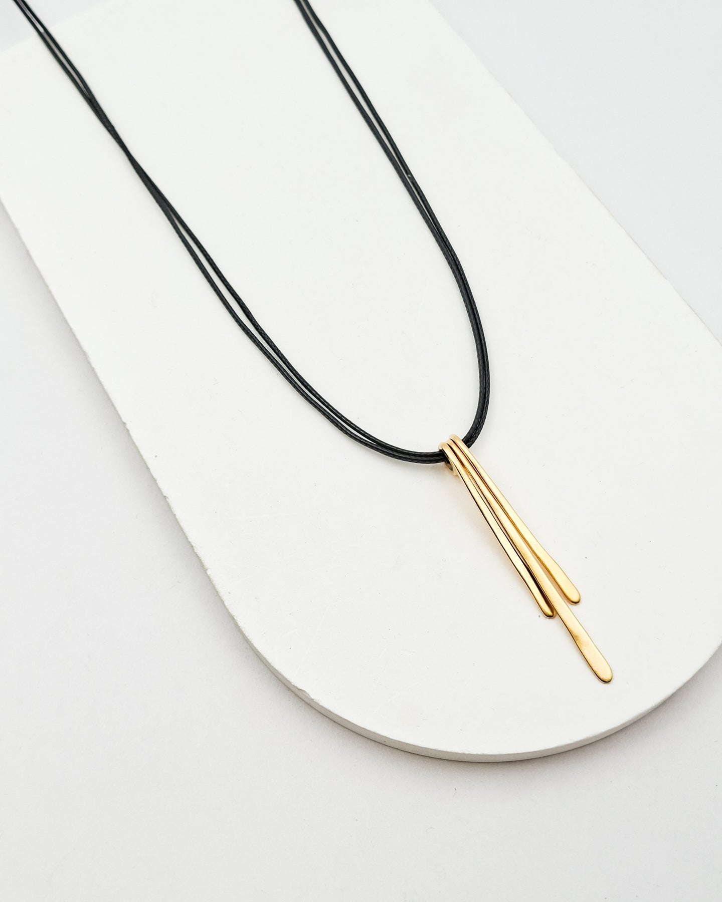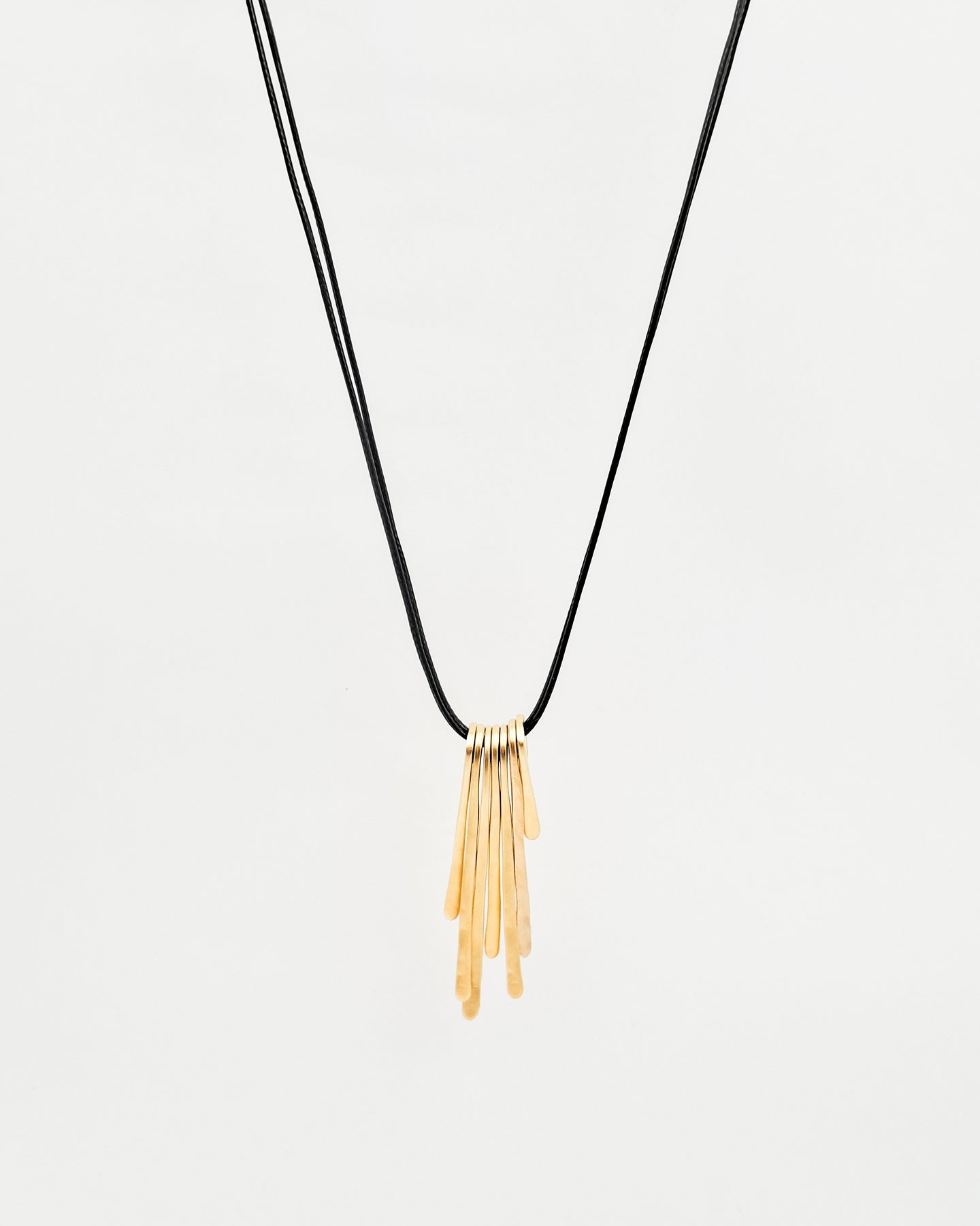 שרשרת ארוכה מהממת מחוט כותנה שחור ותליון עשוי מוטות מרוקעים בעבודת יד באורכים משתנים בציפוי זהב 24 קראט. לבחירתך השרשרת קיימת במבחר גדלים ואורכים של התליון. הפריט מגיע ארוז למתנה ועם אחריות לשנה. ניתן להוסיף ברכה אישית ופתק החלפה.