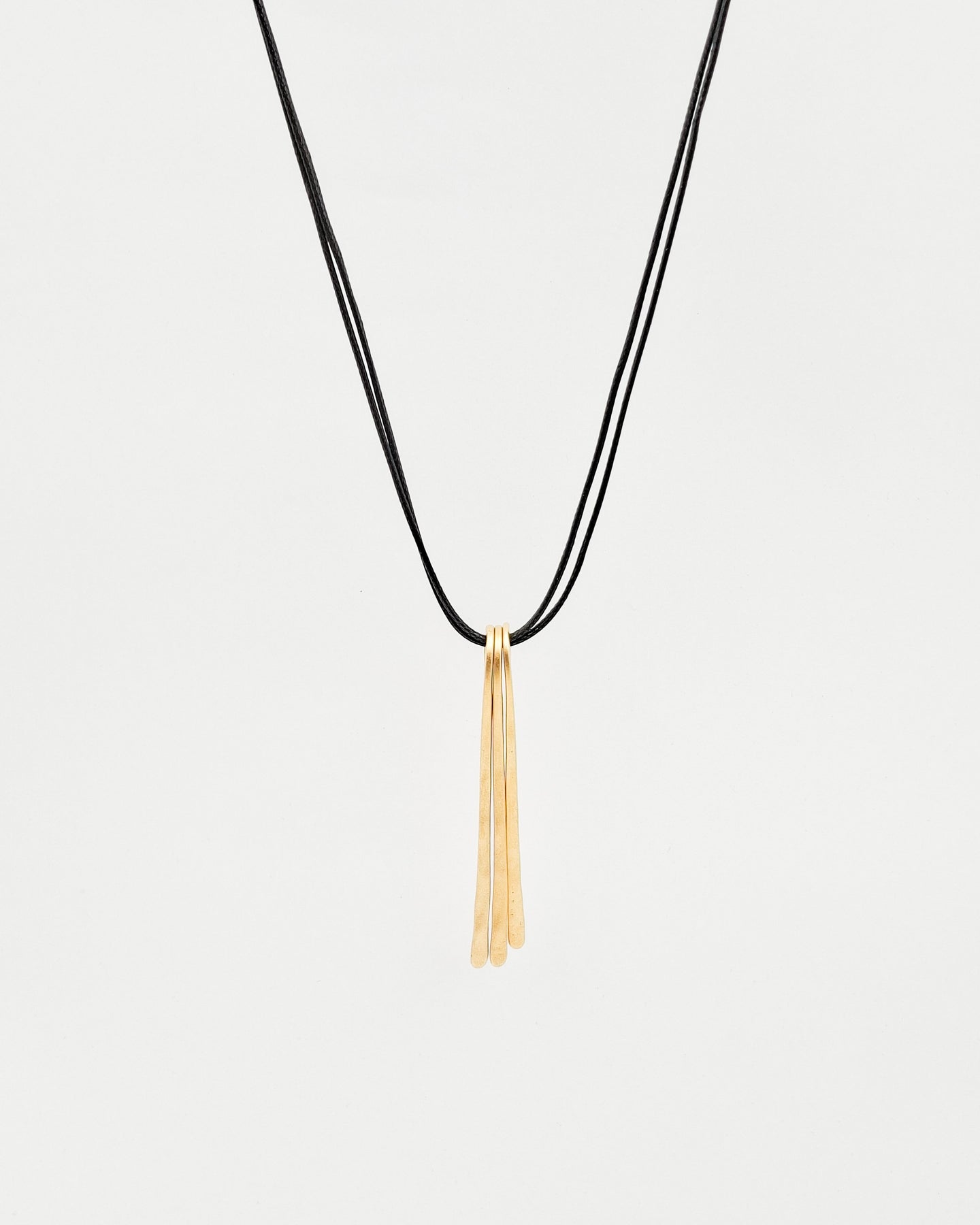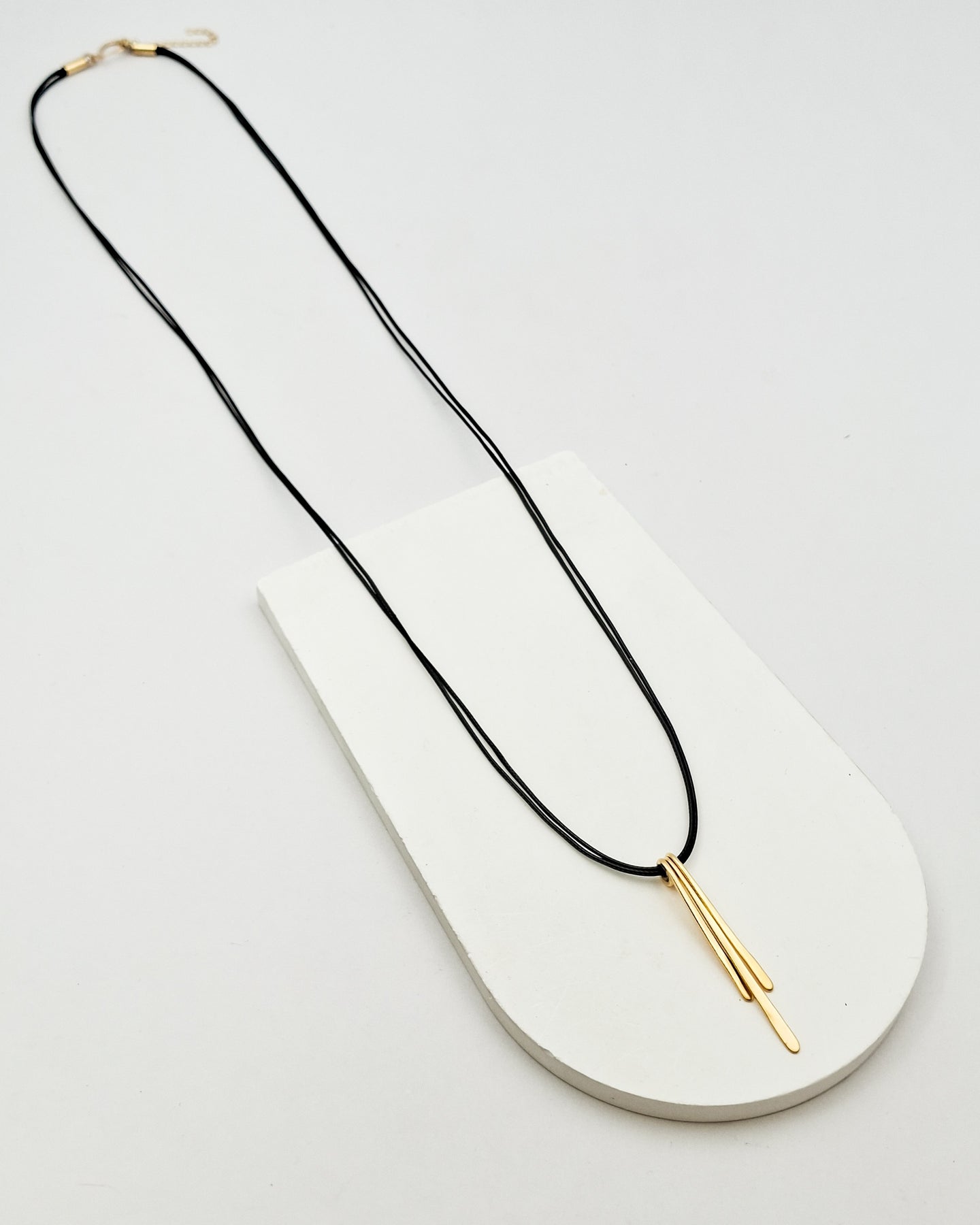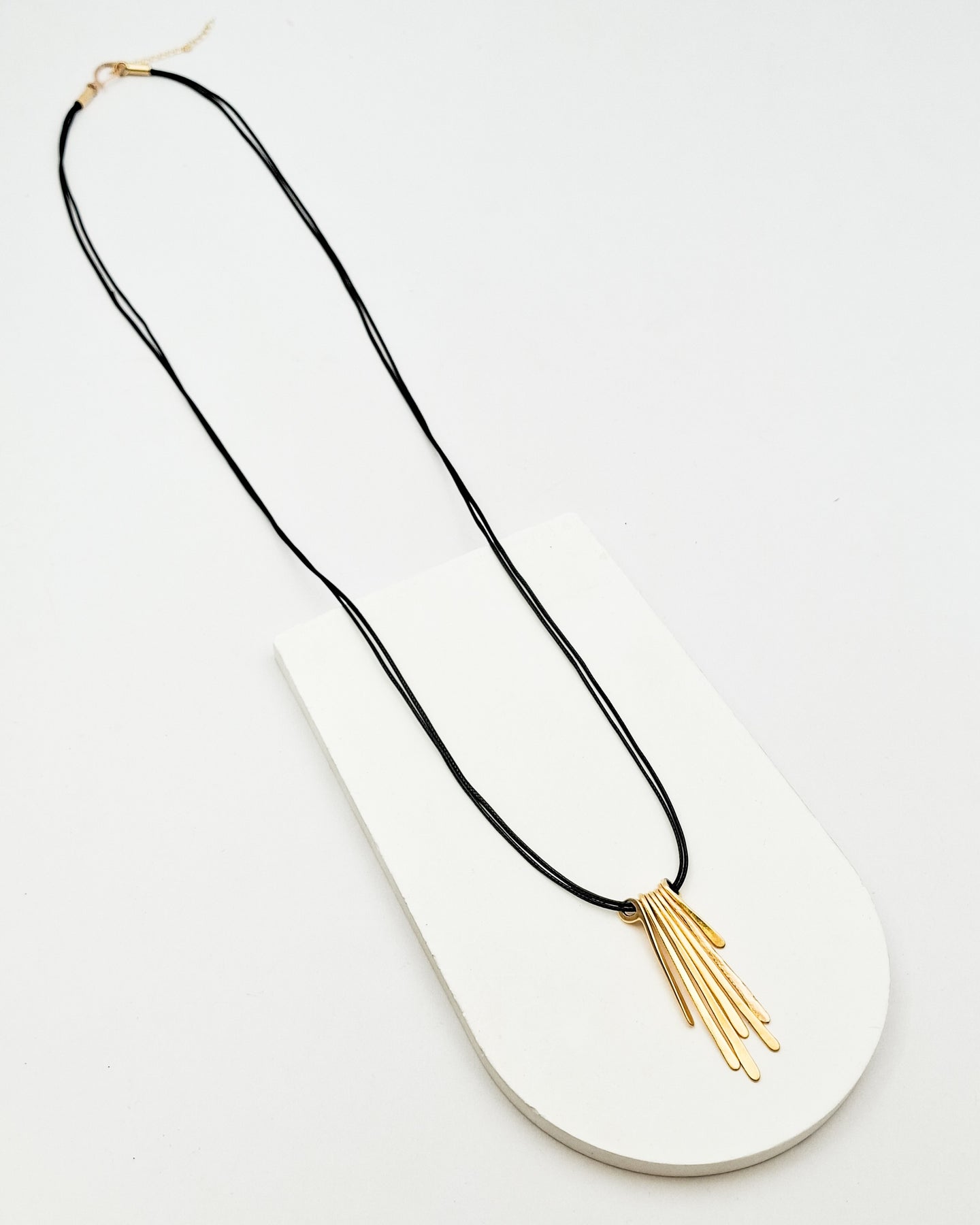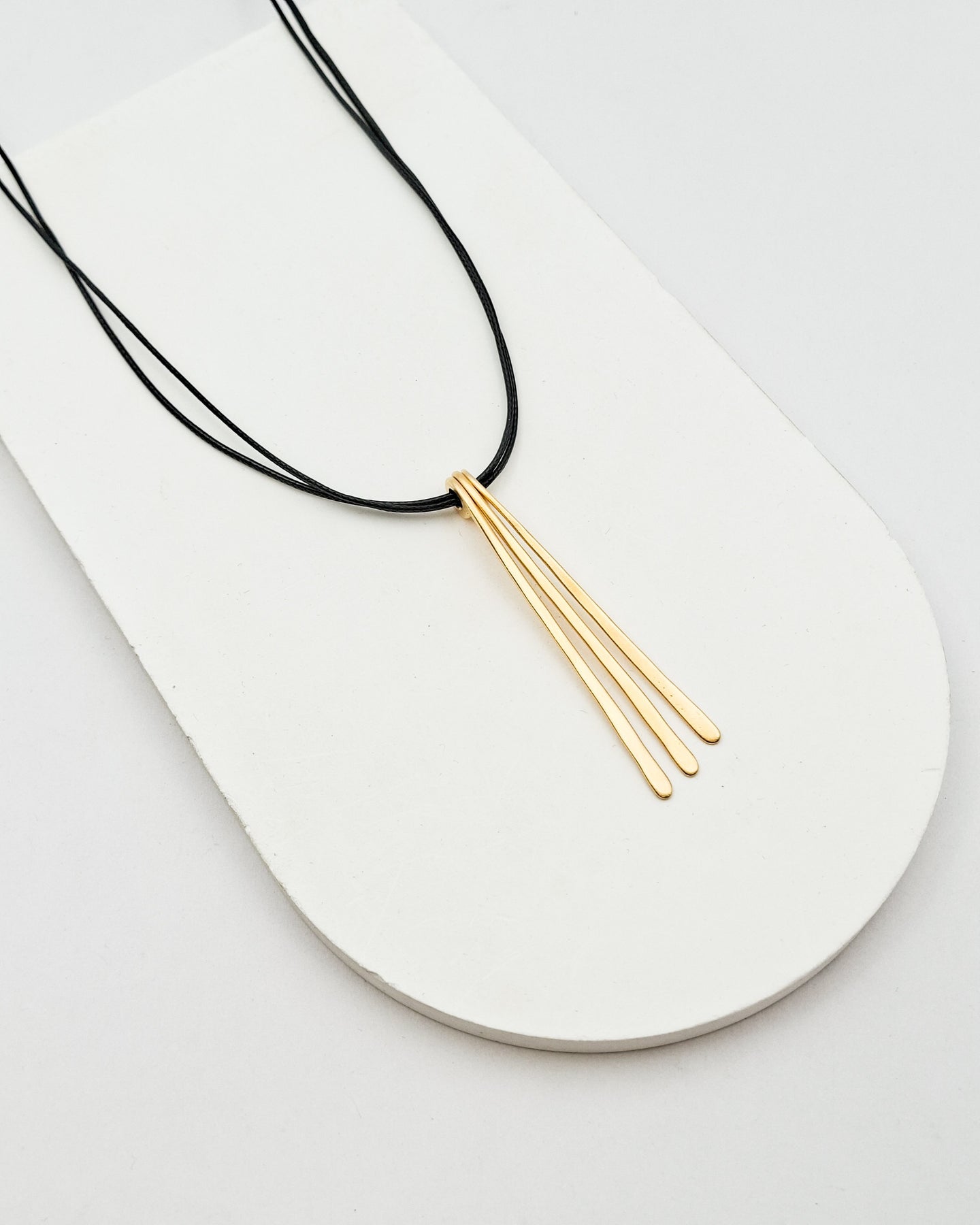 שרשרת ארוכה מהממת מחוט כותנה שחור ותליון עשוי מוטות מרוקעים בעבודת יד באורכים משתנים בציפוי זהב 24 קראט. לבחירתך השרשרת קיימת במבחר גדלים ואורכים של התליון. הפריט מגיע ארוז למתנה ועם אחריות לשנה. ניתן להוסיף ברכה אישית ופתק החלפה.