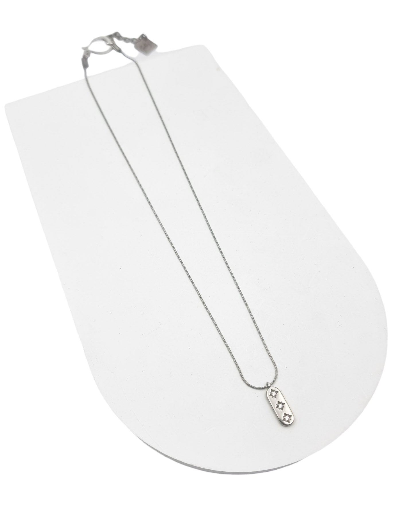 שרשרת קצרה עדינה בעלת תליון אובלי בשיבוץ שלושה זירקונים שקופים. ניתן לענוד גם בשילוב עם שרשראות נוסף למראה שכבות. השרשרת בציפוי ישראלי איכותי של כסף ובגימור מט. הפריט מגיע ארוז למתנה ועם אחריות לשנה. ניתן להוסיף ברכה אישית ופתק החלפה.