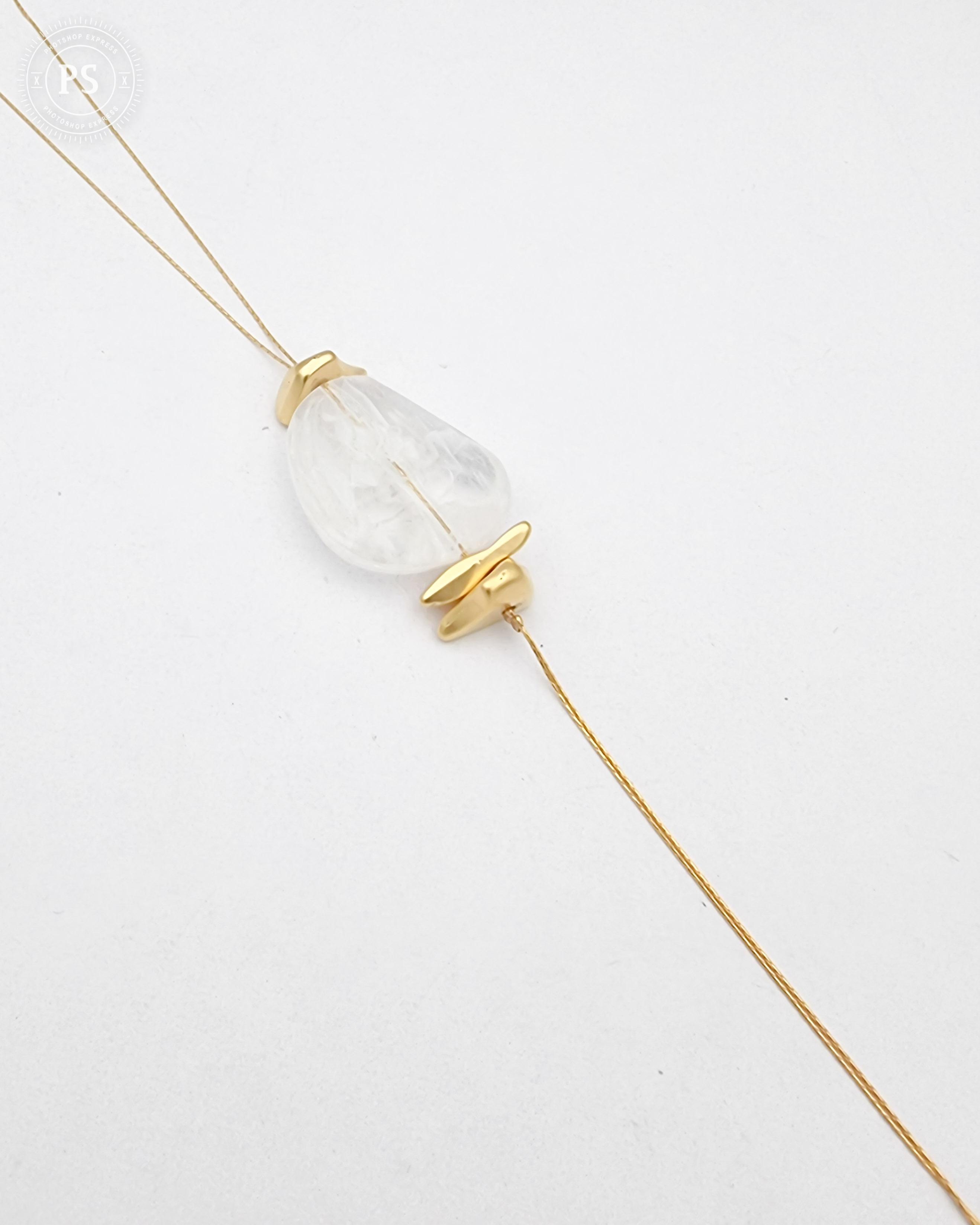 שרשרת עניבה המורכבת משרשרת עם אלמנט סלעי שקוף ואלמנטים של פלחים.