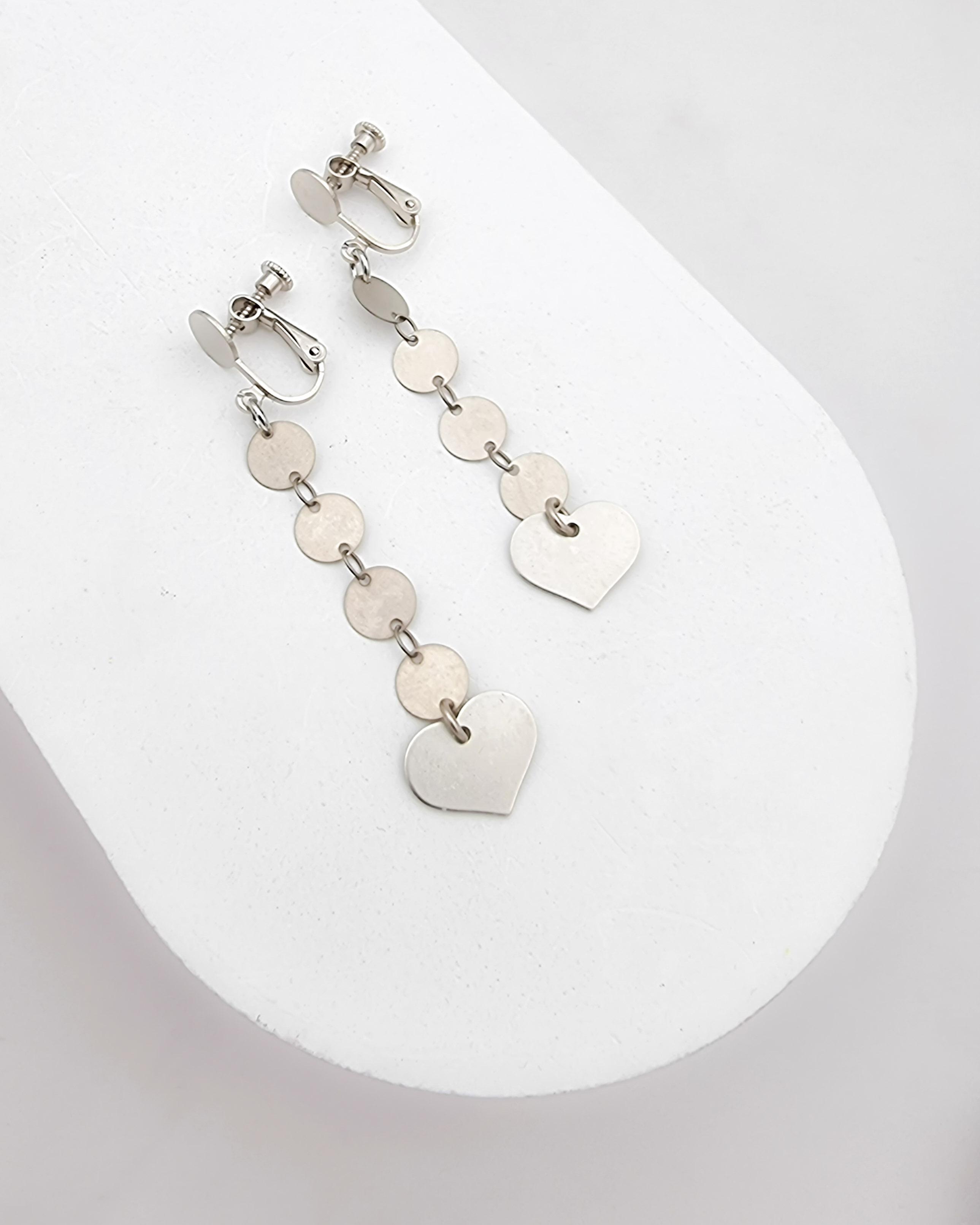 עגילי קליפס תלויים מקסימים בצורת רצף מטבעות ובקצה אלמנט בצורת לב. העגילים בציפוי ישראלי איכותי של זהב 24 קראט או כסף, לבחירתך. תולה עגיל הינו היפואלרגני. הפריט מגיע ארוז למתנה ועם אחריות לשנה. ניתן להוסיף ברכה אישית ופתק החלפה.