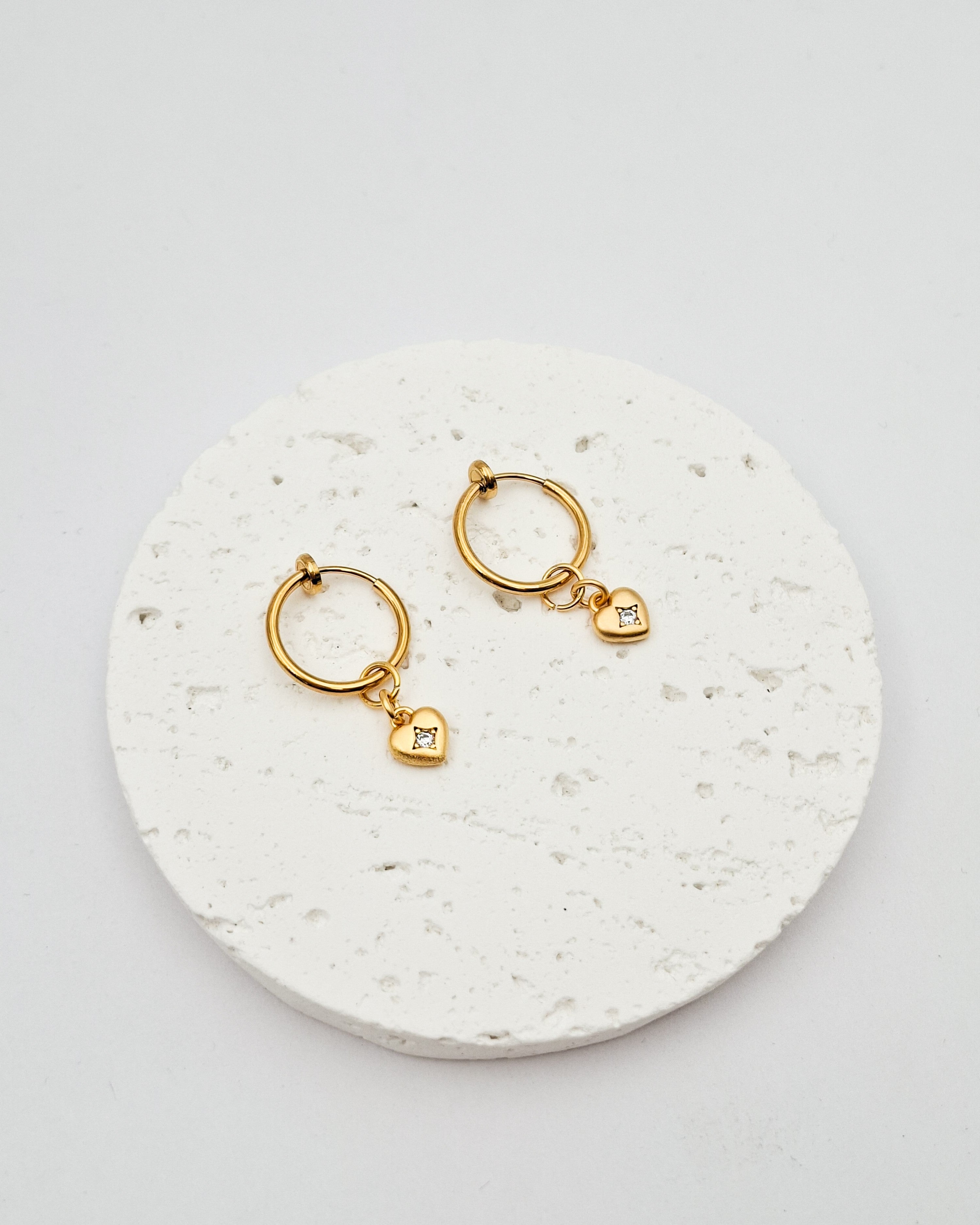עגילי קליפס חישוק לבבות קטנים וזירקון