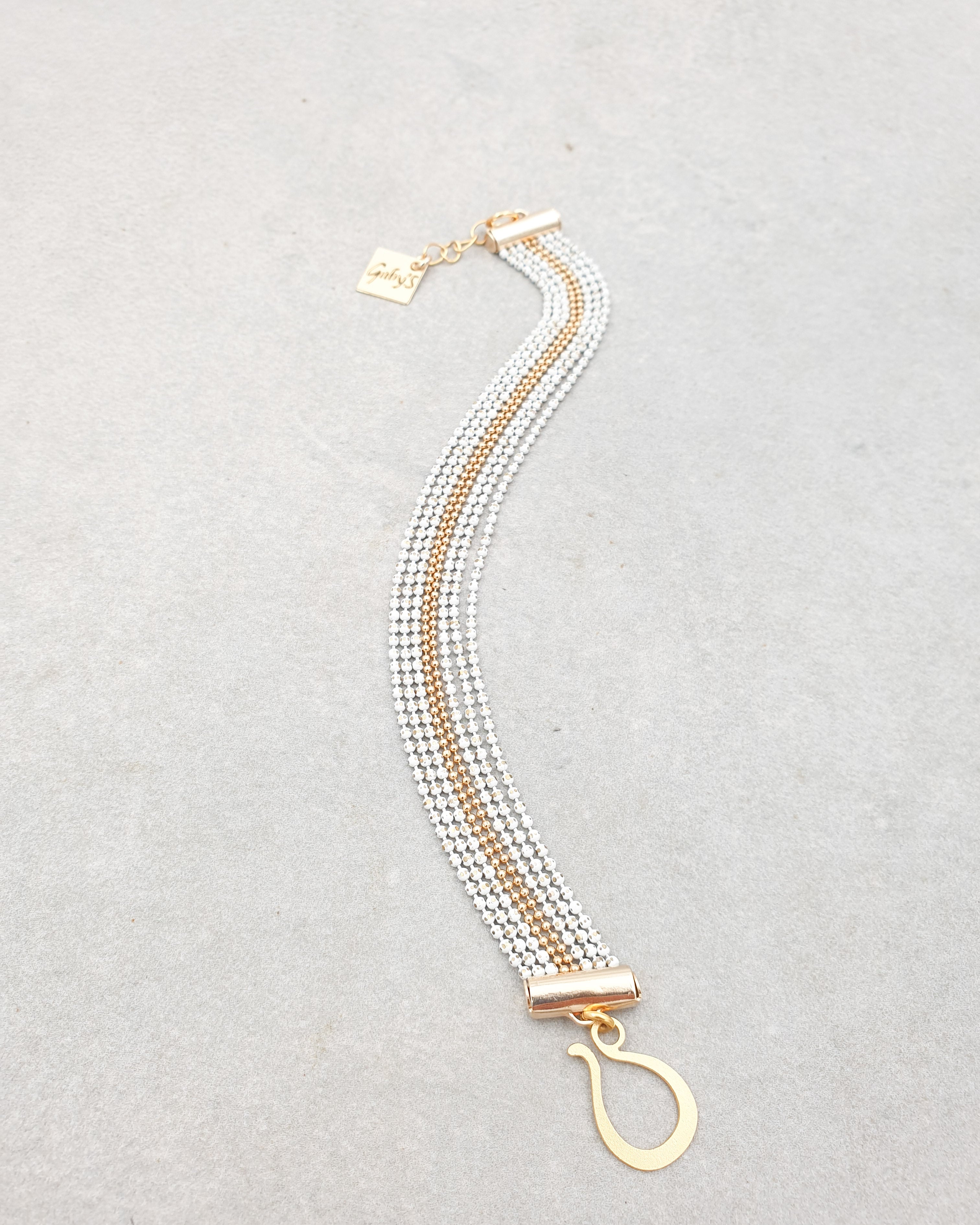 צמיד מקסים בעל תנועתיות העשוי מ-8 שורות של שרשראות בציפוי לבן בניצנוץ עדין וזהב 24 קראט. הפריט מגיע ארוז למתנה ועם אחריות לשנה. ניתן להוסיף ברכה אישית ופתק החלפה.