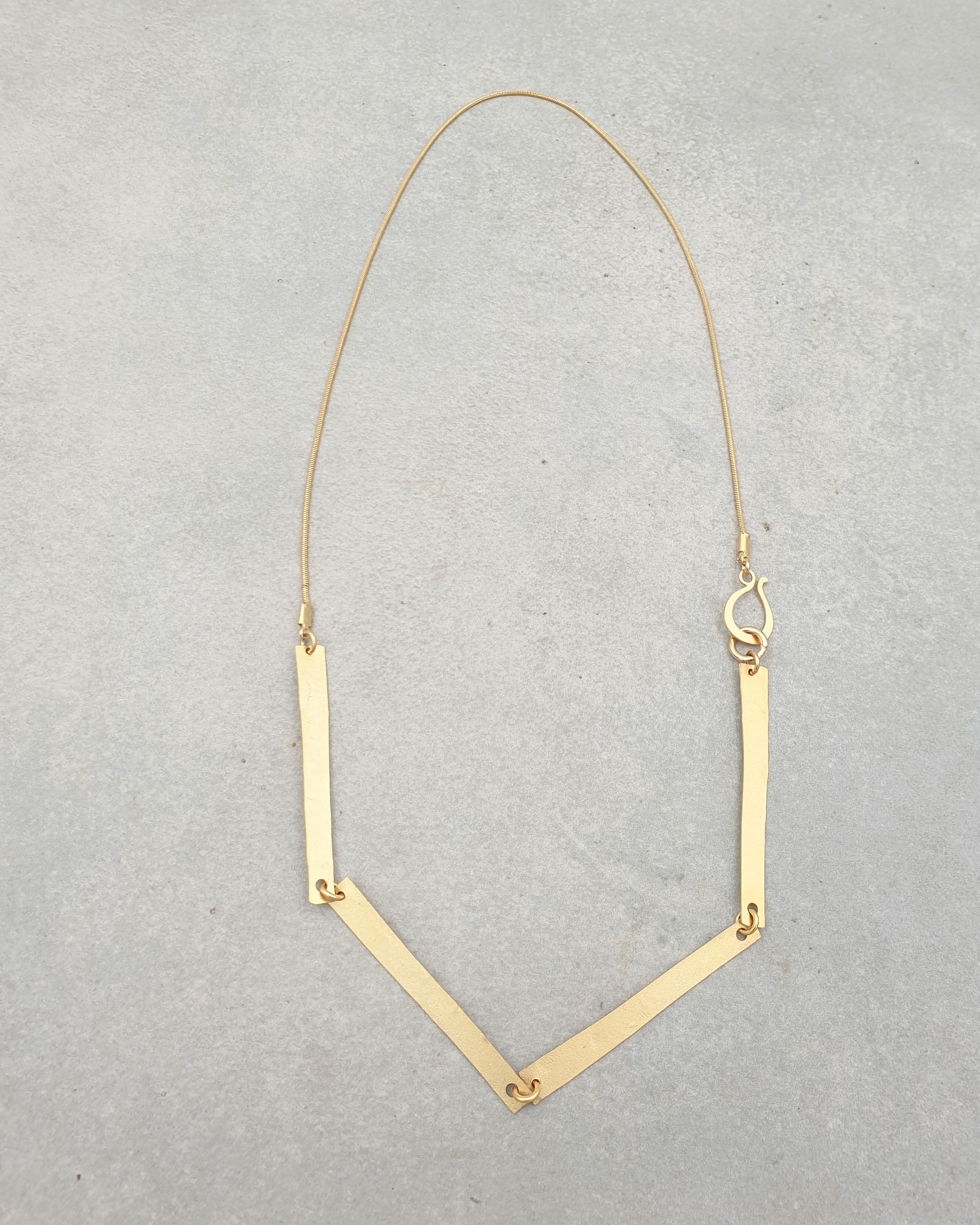 שרשרת קצרה עם ארבעה אלמנטים מלבניים בעבודת יד ובסגירה על הצד. שרשרת קלאסית שגם מתאימה להיענד עם עוד שרשראות. השרשרת בציפוי ישראלי איכותי של זהב 24 קראט ובגימור מט, הפריט מגיע ארוז למתנה ועם אחריות לשנה. ניתן להוסיף ברכה אישית ופתק החלפה.