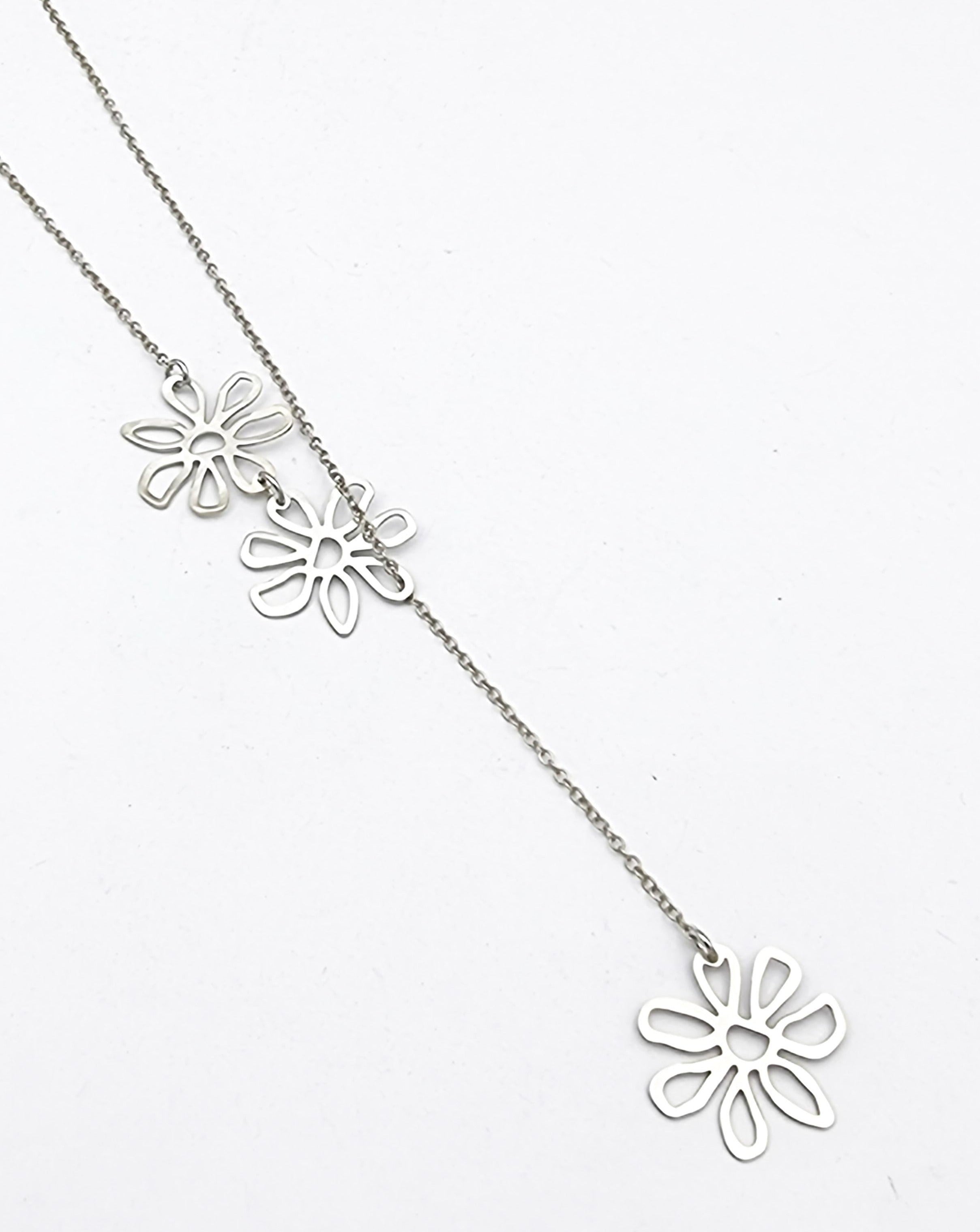 שרשרת  בצורת עניבה, עשויה חוליות קטנות ומשלבת תליונים בצורת פרחים חלולים              וא-סימטריים עשויים בעבודת יד. השרשרת בציפוי ישראלי איכותי של כסף .