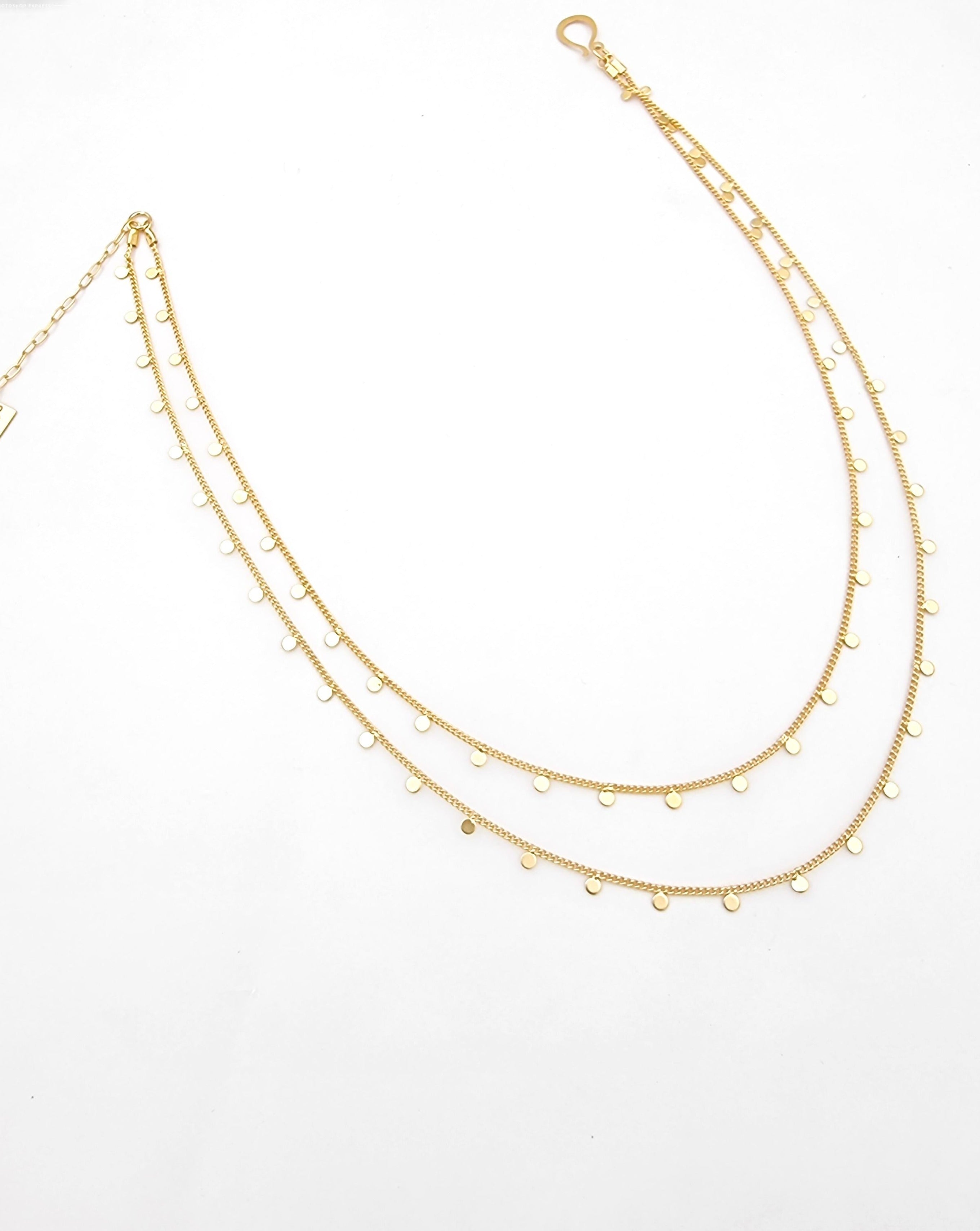 שרשרת שתי שכבות עם אלמנטים עגולים עדינים ומרווחים. שרשרת עדינה ומדהימה ביותר! השרשרת בציפוי ישראלי איכותי של זהב 24 קראט.