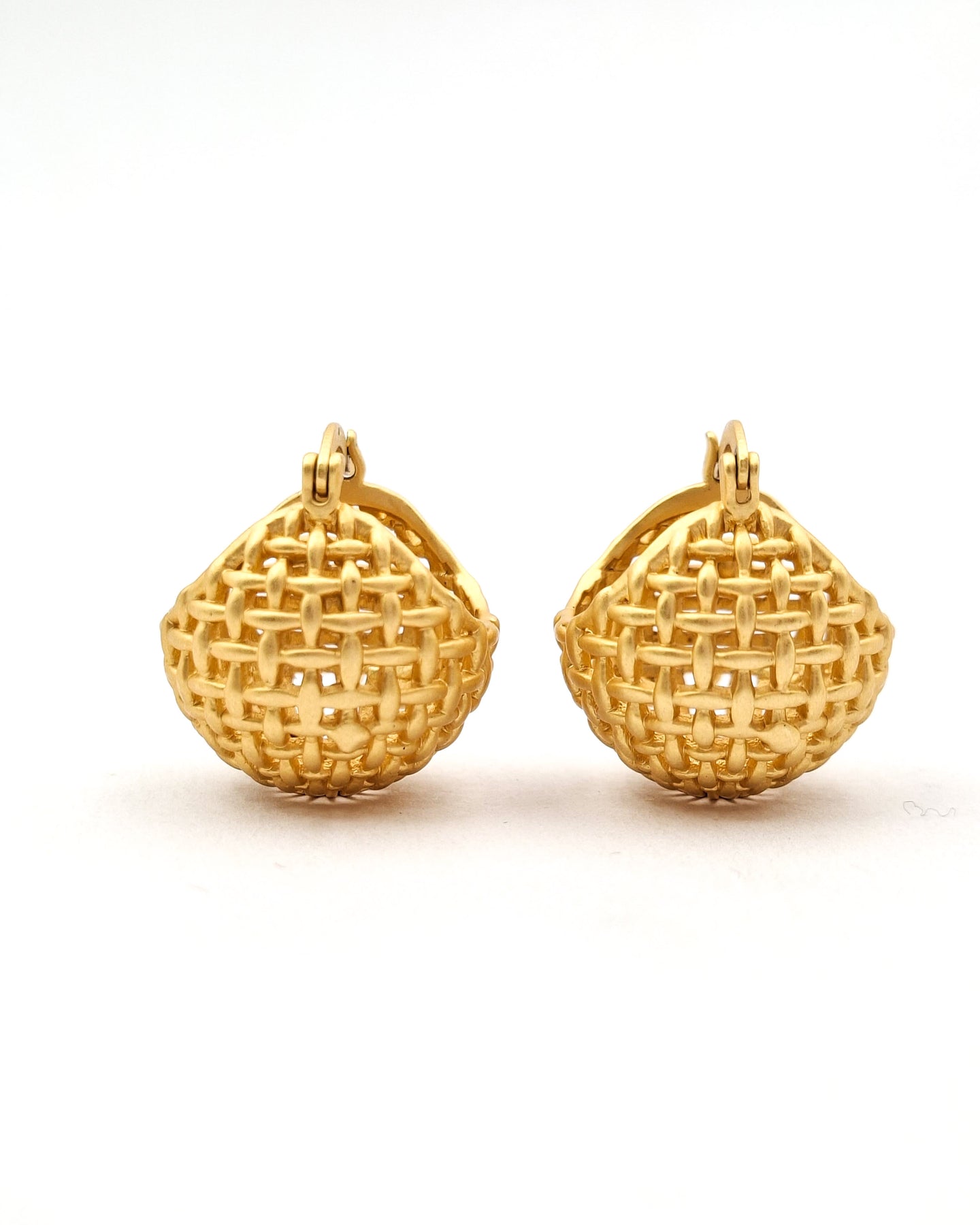 עגילי חישוק מיוחדים ביותר, בצורת כדור מחורר נפוח. עגילים קלי משקל  בציפוי איכותי ישראלי של זהב 24 קראט מבריק ניקל פרי.
