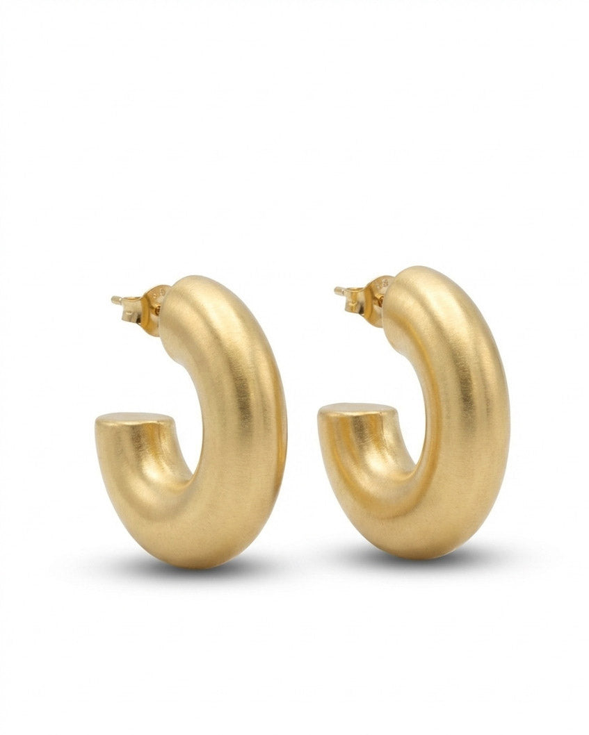 עגילי חישוק צמודים פתוחים מלאי נוכחות ונפח אך קלי משקל. העגילים בציפוי איכותי ישראלי של זהב 24 קראט .