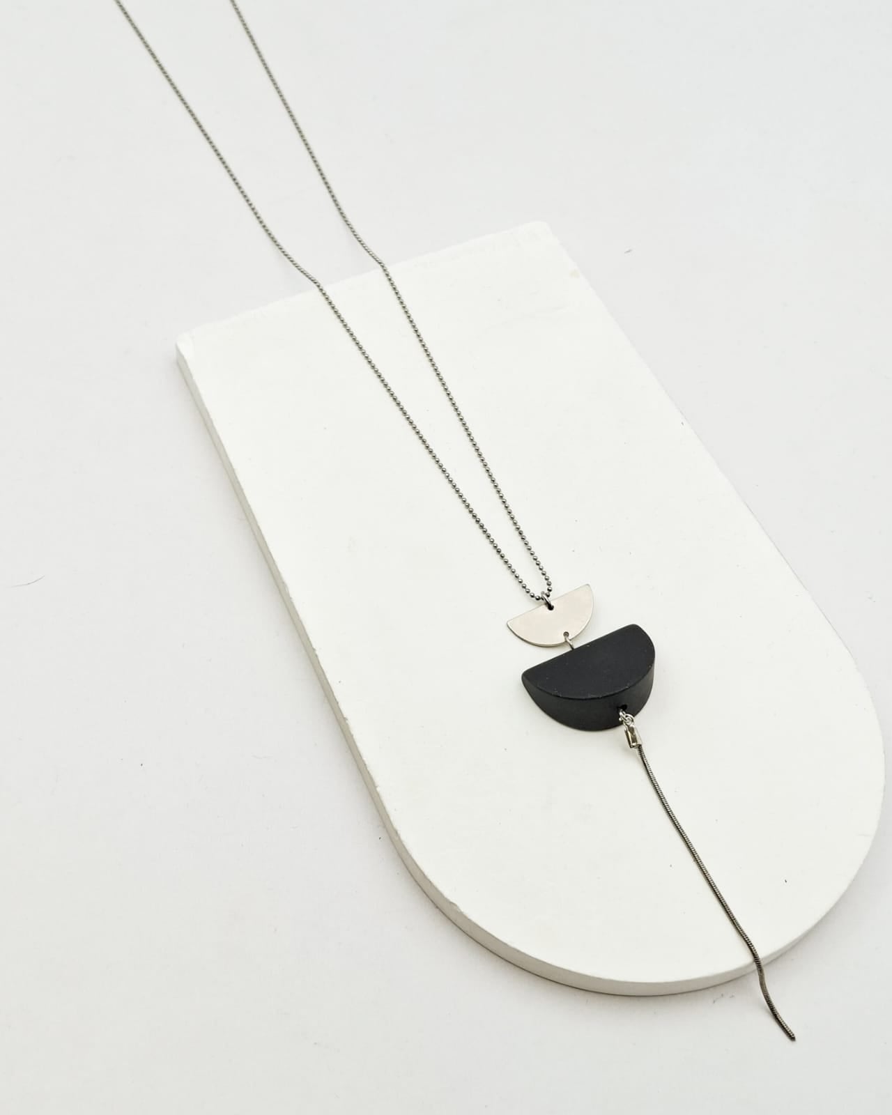 שרשרת עדינה ומיוחדת המשלבת בין חומרים בגימור מט לבין חומרים בגימור מנצנץ עדין. שרשרת כדורית מנצנצת ועליה תליון בצורת סהר בציפוי זהב בשילוב עם סהר סיליקון מט ומתחת פס שרשרת מנצנצת. קיימת בשילוב גוונים-שחור מנצנץ וציפוי זהב 24 קראט, או אפור מנצנץ בשילוב ציפוי זהב 24 קראט, או שרשרת כסף ואלמנט כסף, לבחירתך. הפריט מגיע ארוז למתנה ועם אחריות לשנה. ניתן להוסיף ברכה אישית ופתק החלפה.