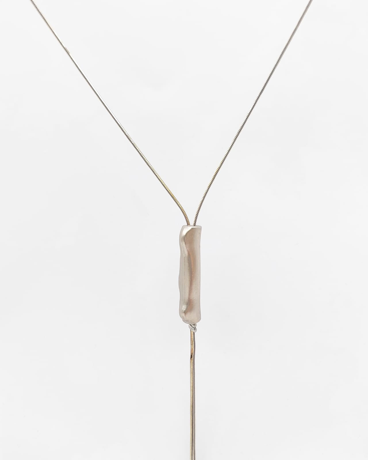 שרשרת עניבה ארוכה בגוון אפור מנצנץ עם אלמנט צינורי אסימטרי. עיצוב נקי ומוקפד, שרשרת מדהימה שמשדרגת כל לבוש והופעה. האלמנט בשרשרת בציפוי ישראלי איכותי של זהב 24 קראט או כסף, לבחירתך. הפריט מגיע ארוז למתנה ועם אחריות לשנה. ניתן להוסיף ברכה אישית ופתק החלפה.