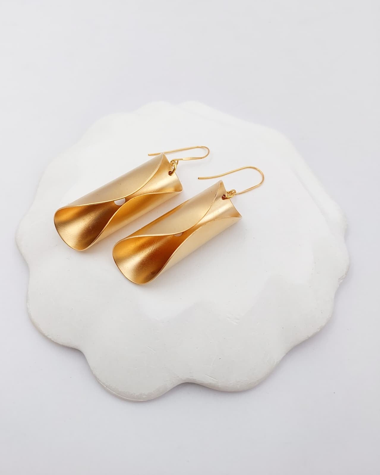 עגילים תלויים עם אלמנט של עיגול מקופל. העגילים בציפוי ישראלי איכותי של זהב 24 קראט. תולה העגיל הינו היפו אלרגני. הפריט מגיע ארוז למתנה ועם אחריות לשנה. ניתן להוסיף ברכה אישית ופתק החלפה.
