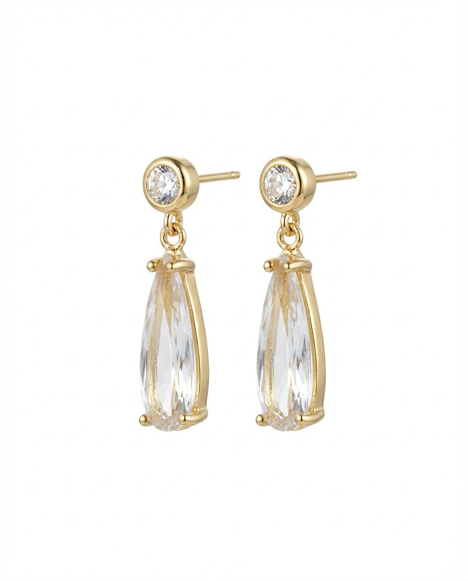 עגילים תלויים עם בסיס צמוד של זירקון עגול ממוסגר ותליון של זירקון משובץ בצורת טיפה. העגילים בציפוי ישראלי איכותי והיפואלרגני של זהב 24 קראט. הפריט מגיע ארוז למתנה ועם אחריות לשנה. ניתן להוסיף ברכה אישית ופתק החלפה