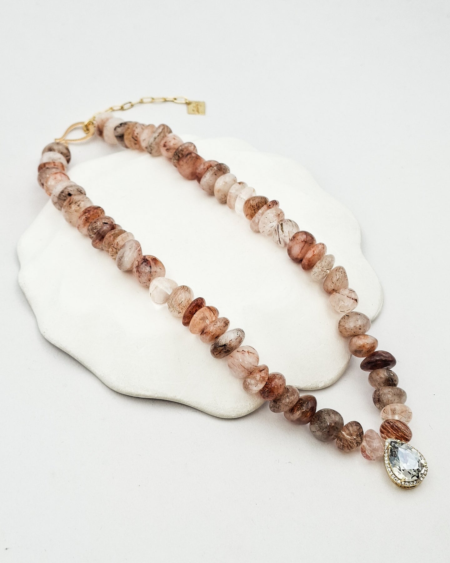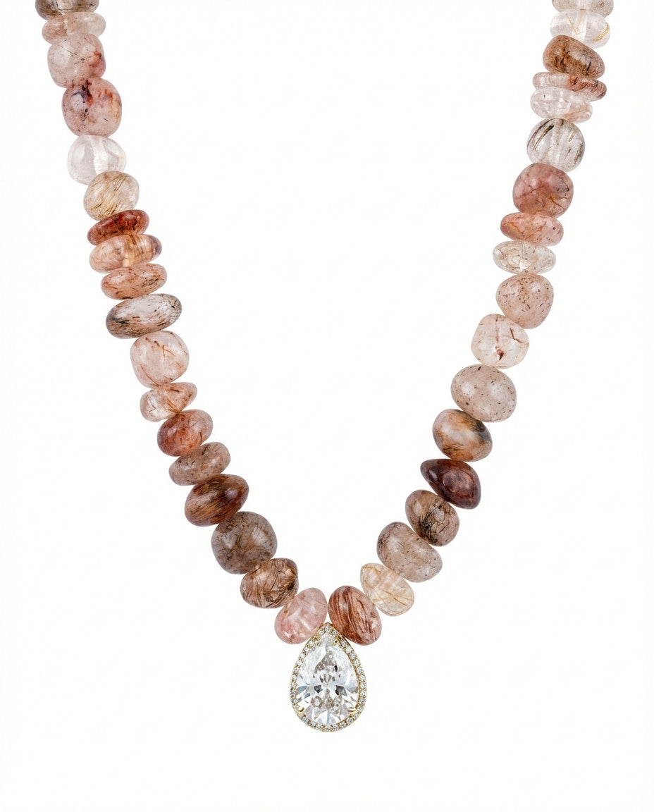 שרשרת אבנים אמתיות בגוונים של ורדרד כתמתם עם תליון של טיפה ומסגרת זירקונים. בציפוי ישראלי איכותי של זהב 24 קראט. הפריט מגיע ארוז למתנה ועם אחריות לשנה. ניתן להוסיף ברכה אישית ופתק החלפה.