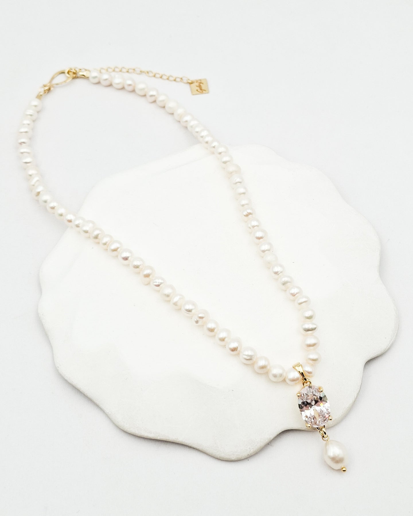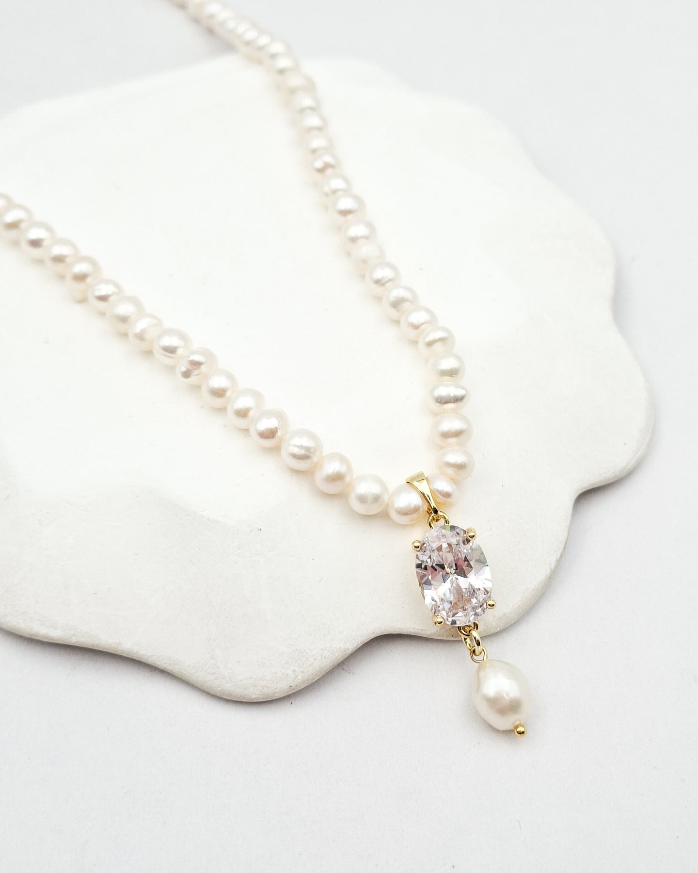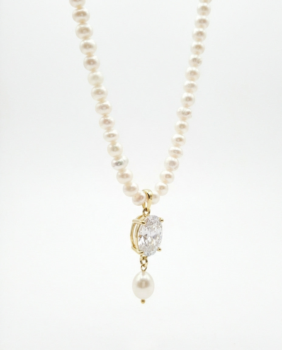 שרשרת פנינים אמתיות קצרה עם תליון של זירקון גדול ופנינה תלויה. בציפוי ישראלי איכותי של זהב 24 קראט. הפריט מגיע ארוז למתנה ועם אחריות לשנה. ניתן להוסיף ברכה אישית ופתק החלפה.