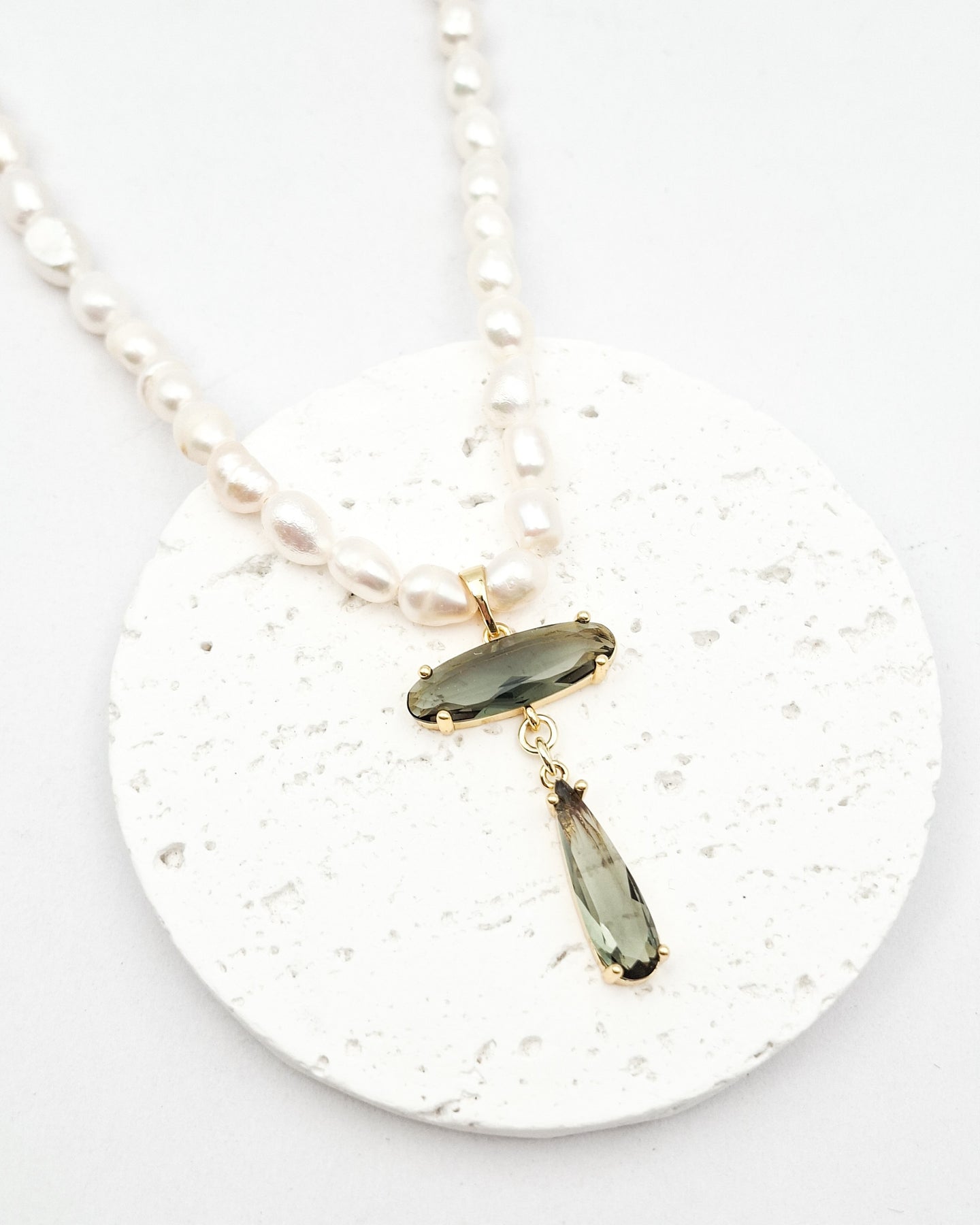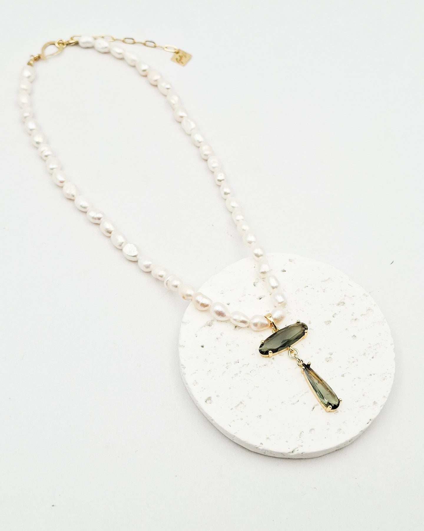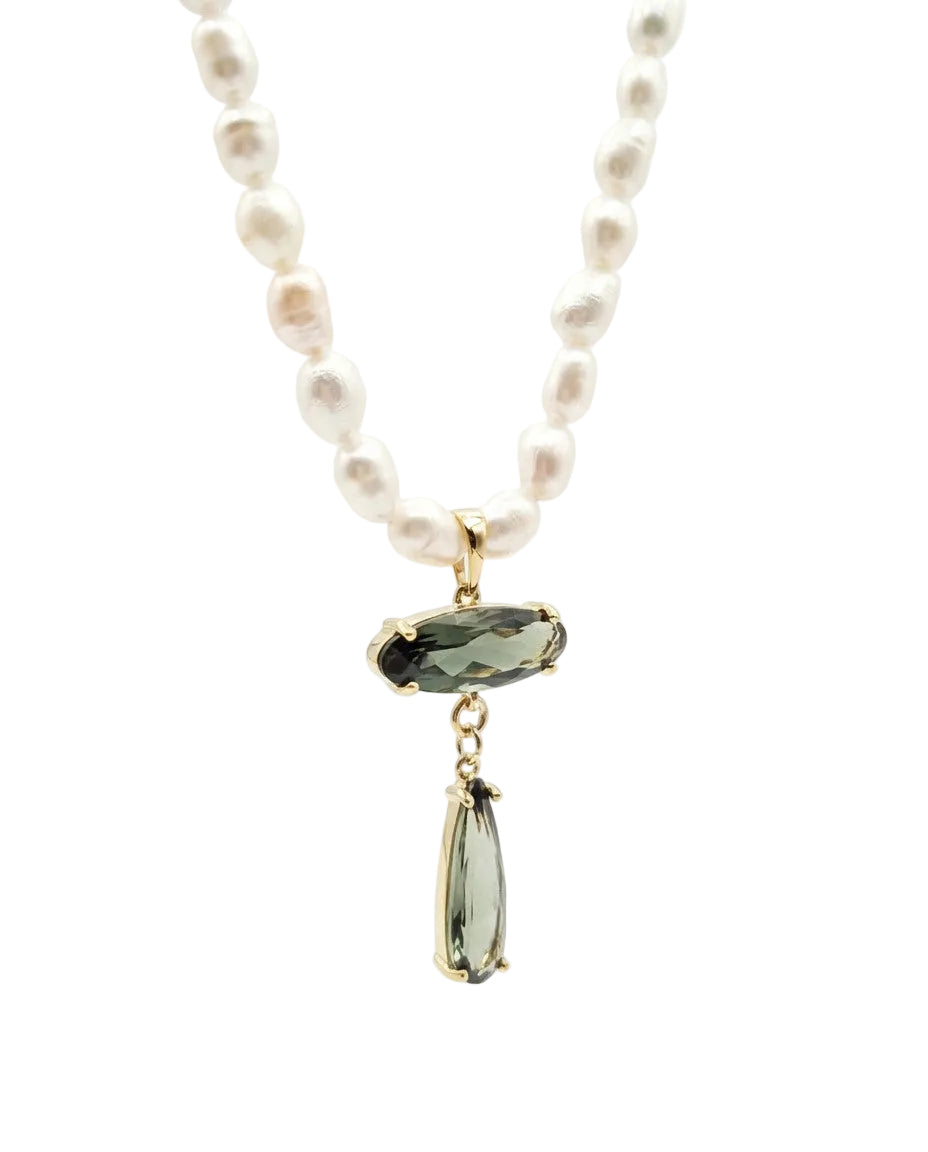 שרשרת פנינים אמתיות עם תליון של זירקונים תלוי בגוון אפרפר מעושן/ שקוף/ חום. בציפוי ישראלי איכותי של זהב 24 קראט. הפריט מגיע ארוז למתנה ועם אחריות לשנה. ניתן להוסיף ברכה אישית ופתק החלפה.