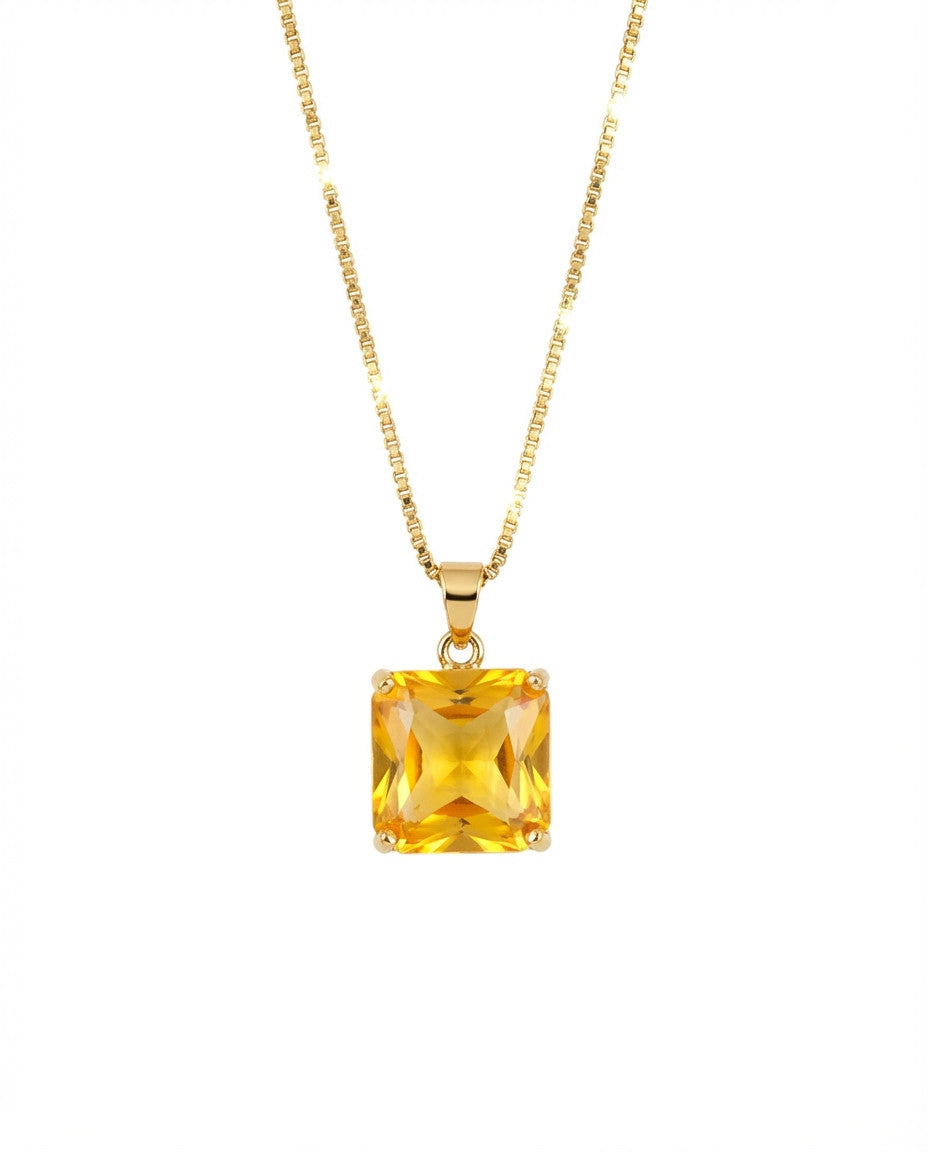 שרשרת ארוכה עם תליון של קריסטל בגוון צהבהב בצורת ריבוע . השרשרת בציפוי ישראלי איכותי של זהב 24 קארט היפואלרגני. הפריט מגיע ארוז למתנה ועם אחריות לשנה. ניתן להוסיף ברכה אישית ופתק החלפה.