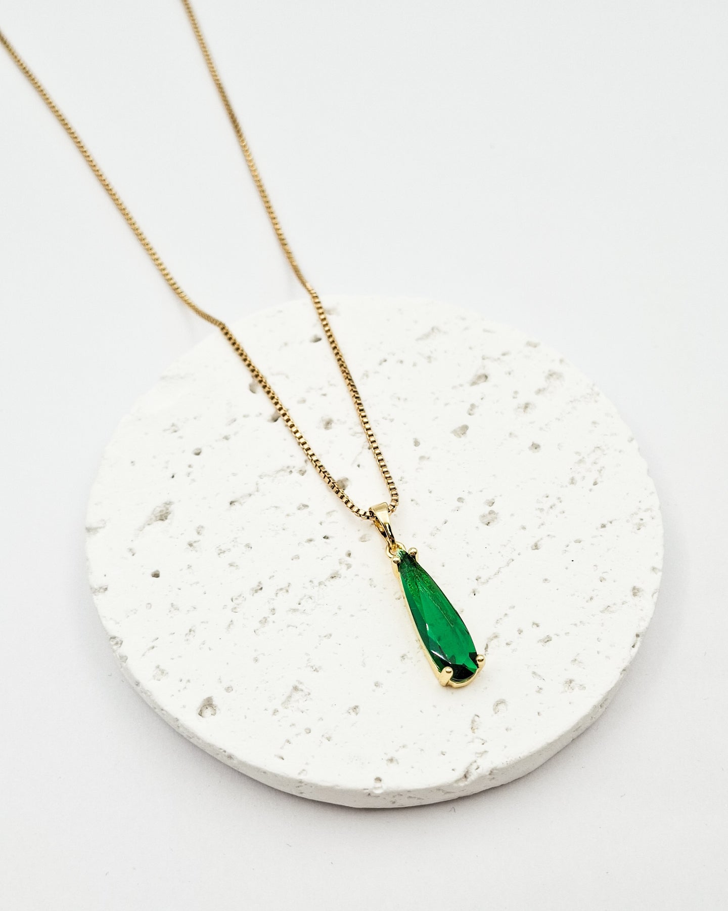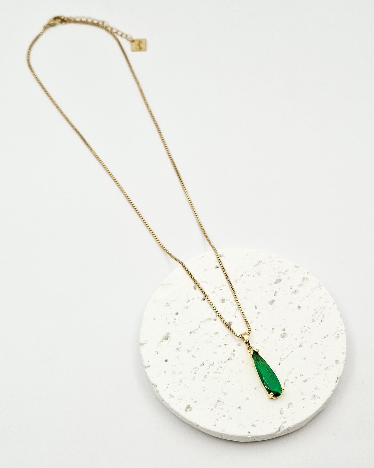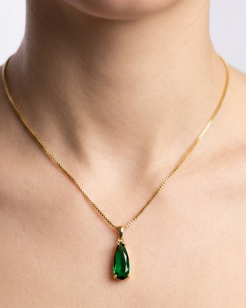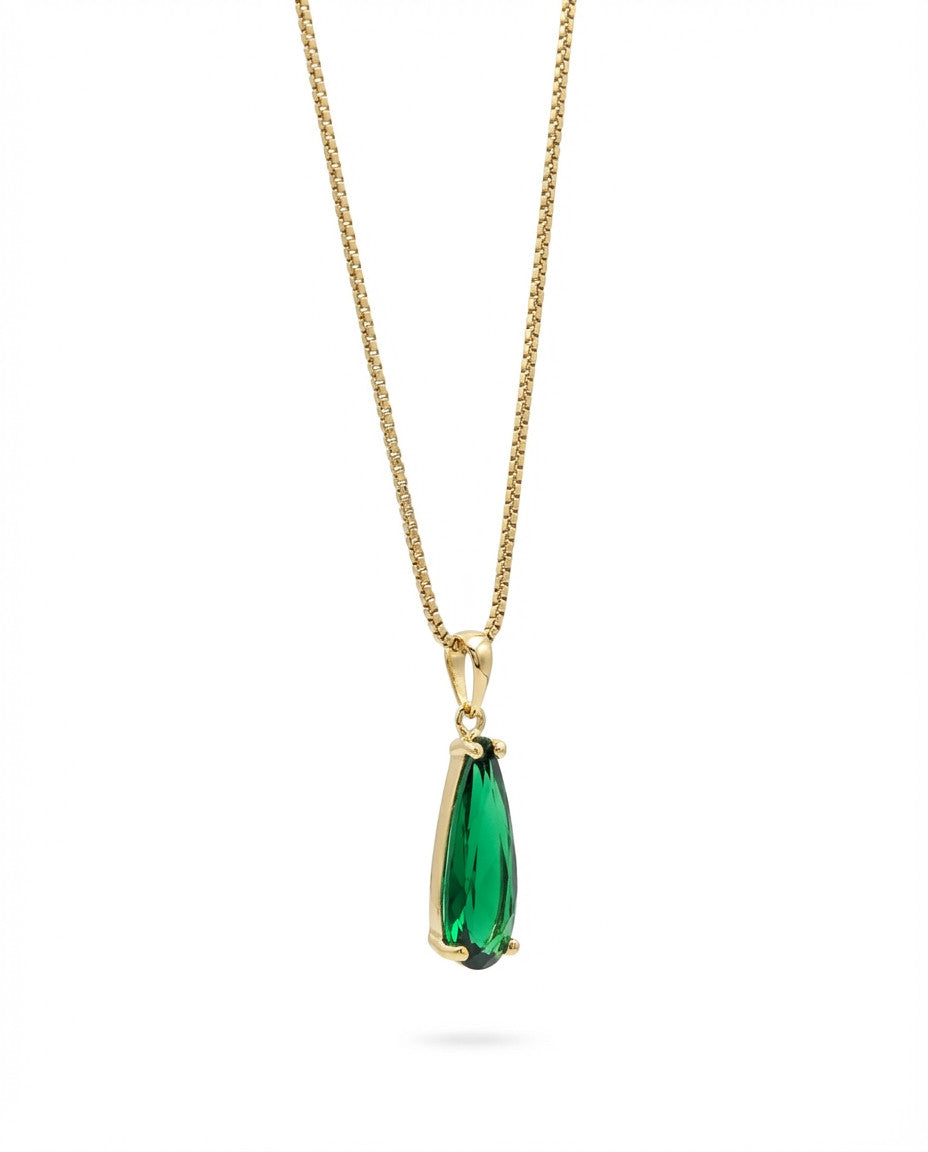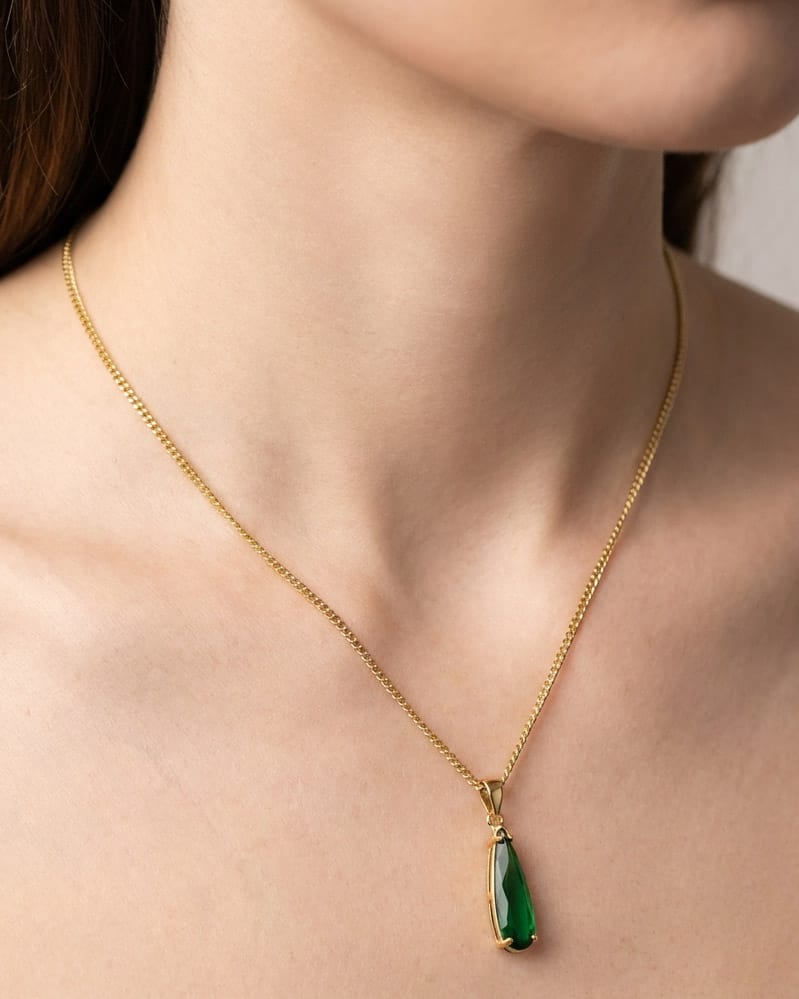 שרשרת קצרה עם תליון של קריסטל בגוון ירוק בצורת טיפה מוארכת . השרשרת בציפוי ישראלי איכותי של זהב 24 קארט היפואלרגני. הפריט מגיע ארוז למתנה ועם אחריות לשנה. ניתן להוסיף ברכה אישית ופתק החלפה.