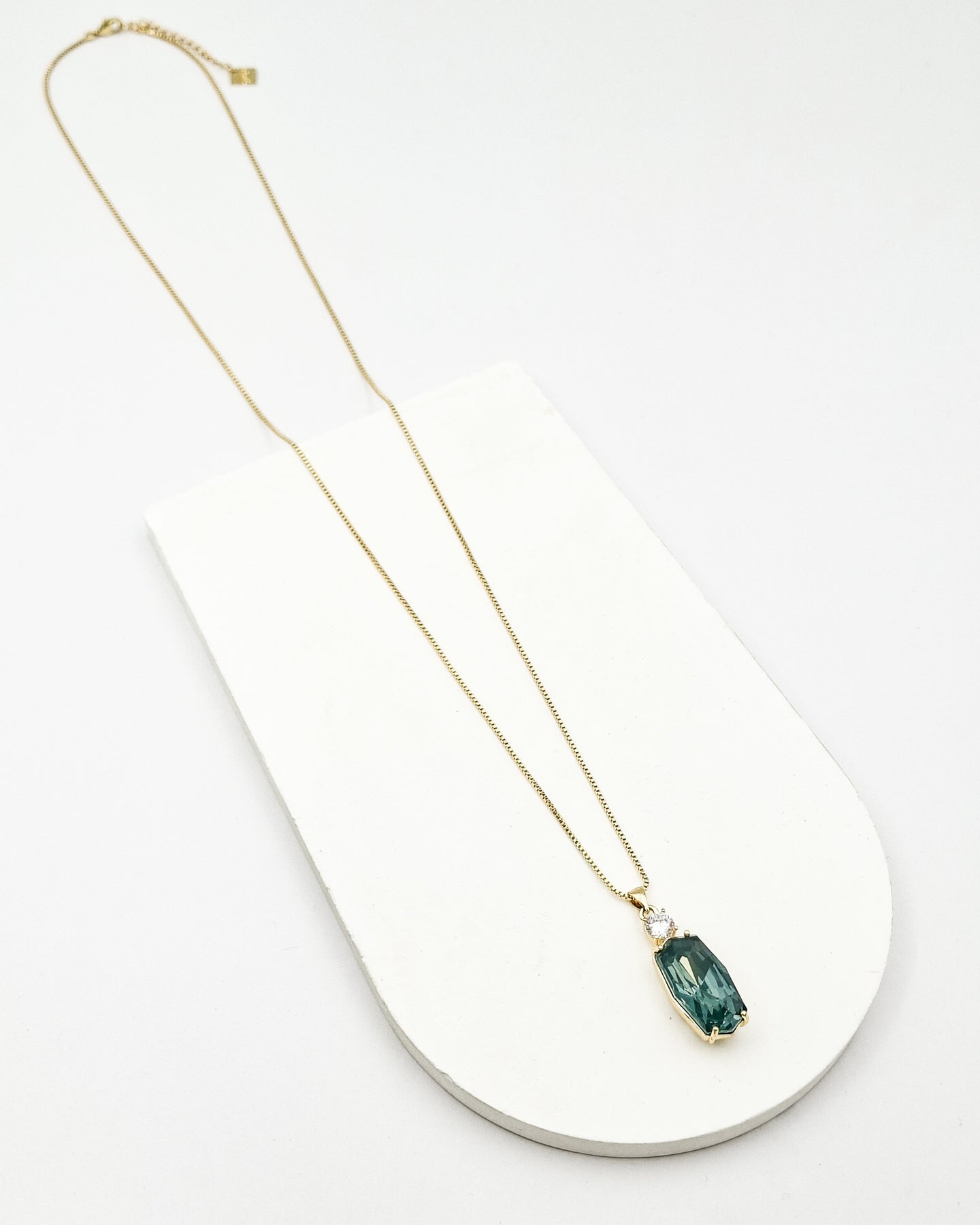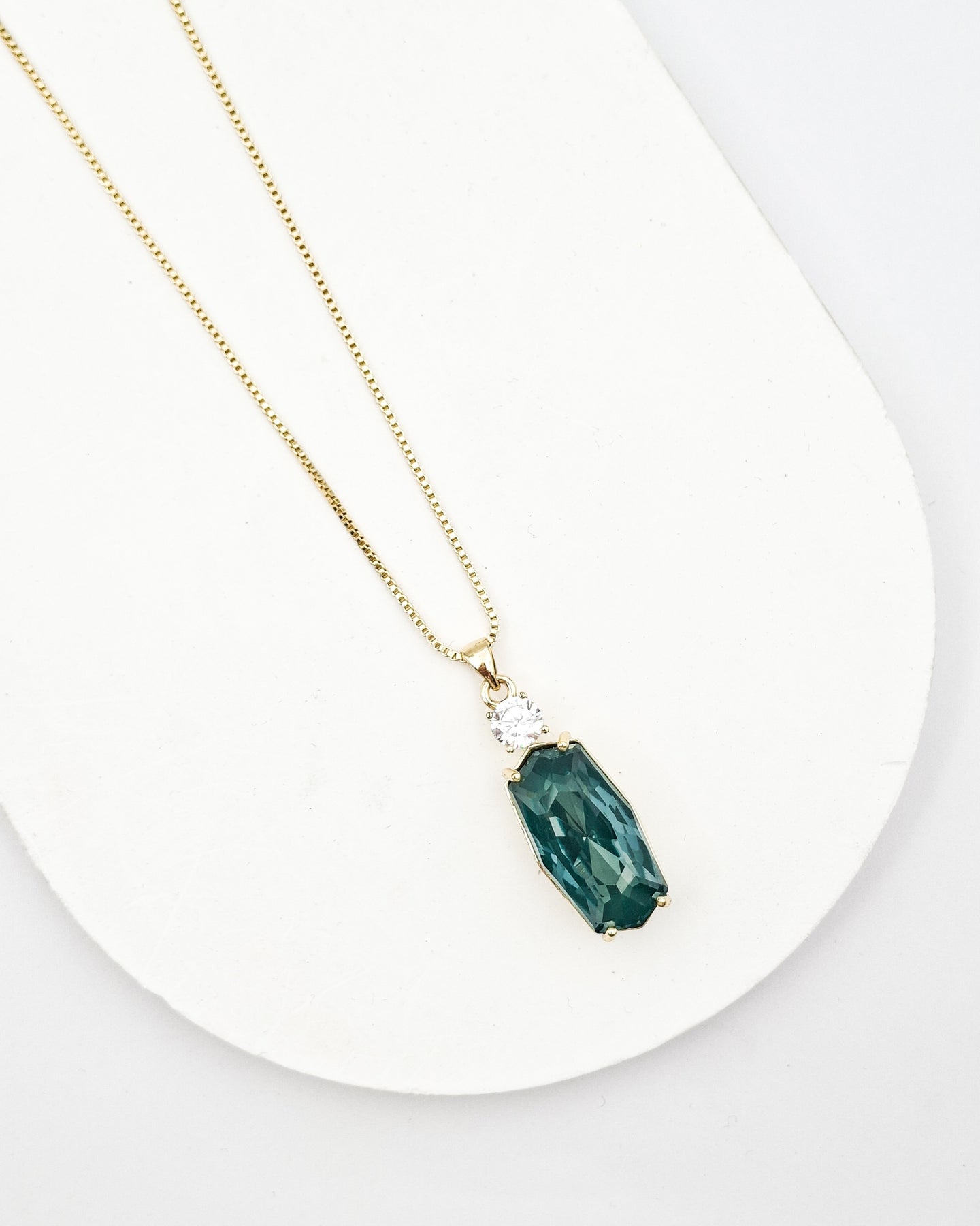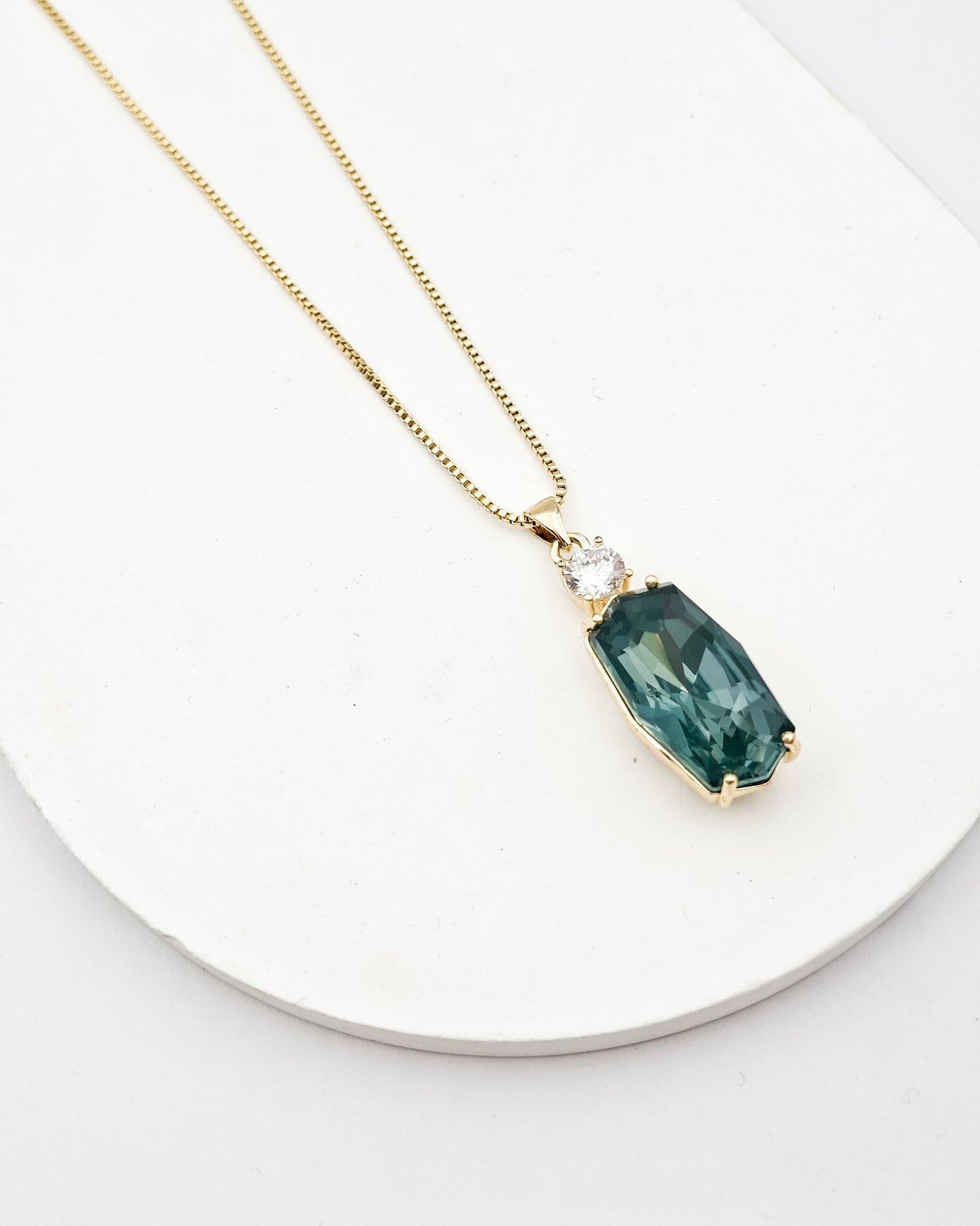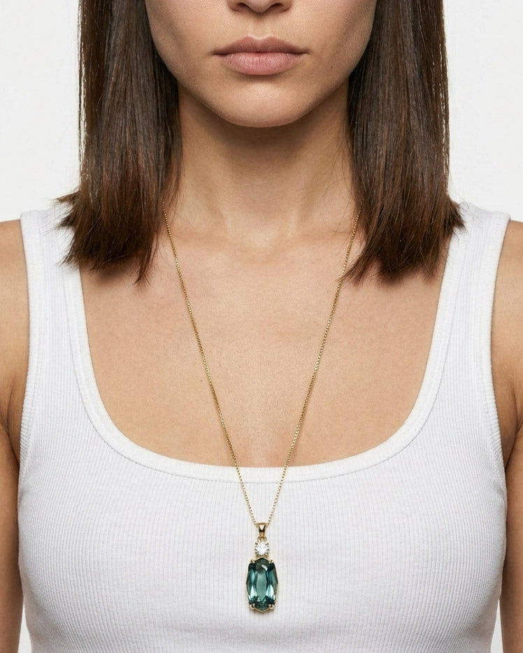 שרשרת ארוכה עם תליון של קריסטל בגוון ירוק עמוק ןזירקון עגול שקוף . השרשרת בציפוי ישראלי איכותי של זהב 24 קארט היפואלרגני. הפריט מגיע ארוז למתנה ועם אחריות לשנה. ניתן להוסיף ברכה אישית ופתק החלפה.