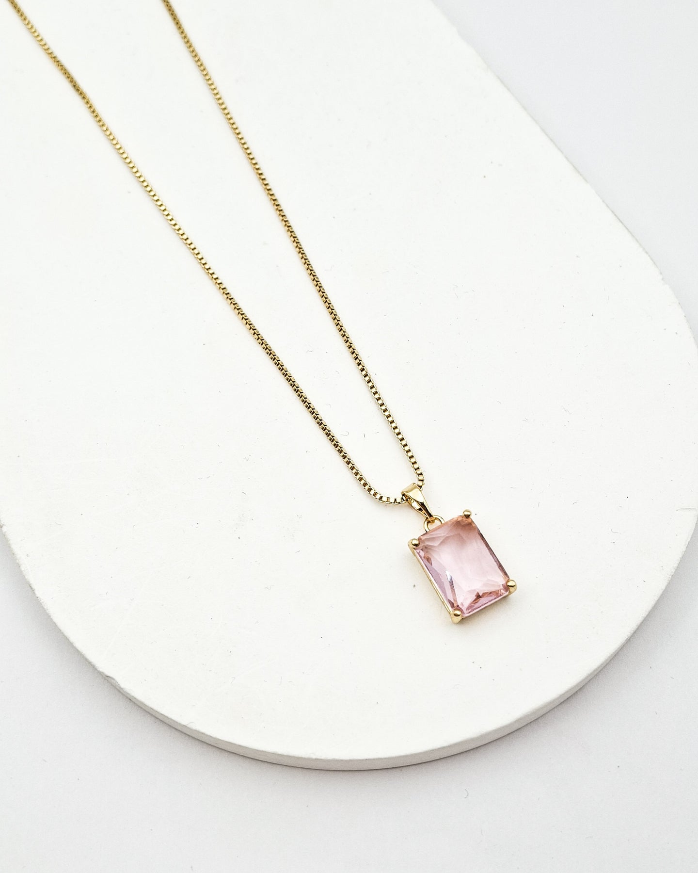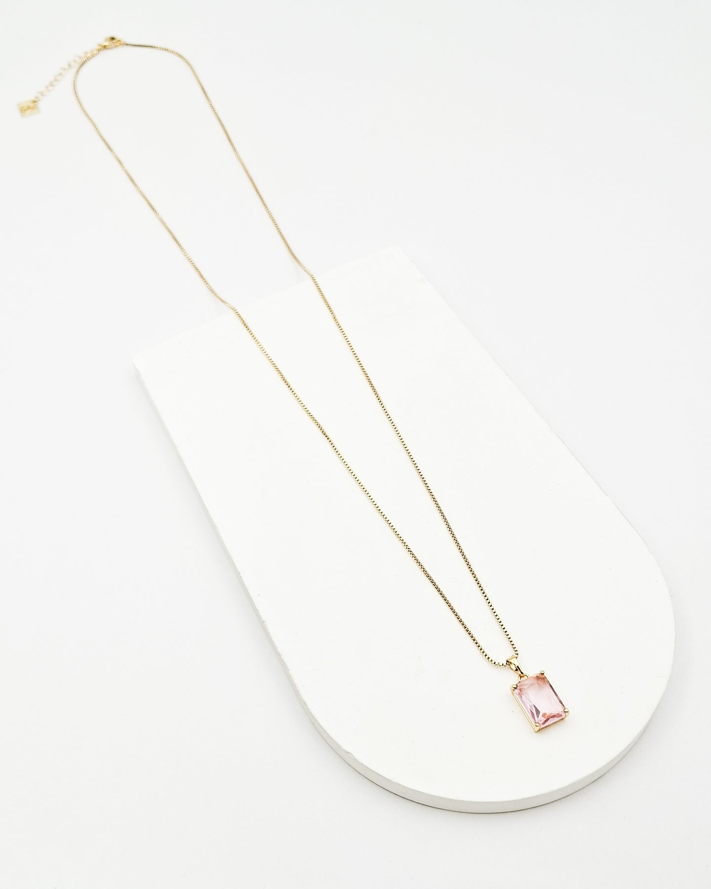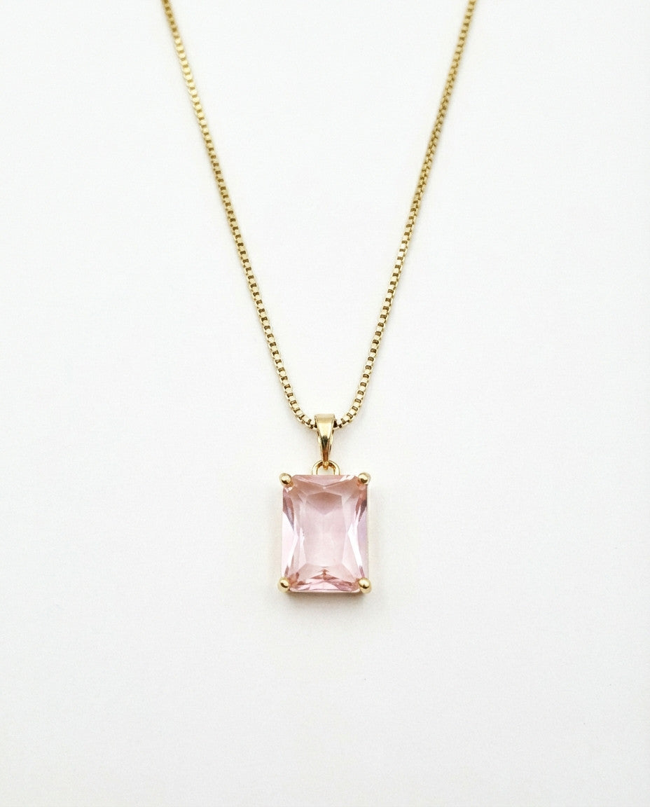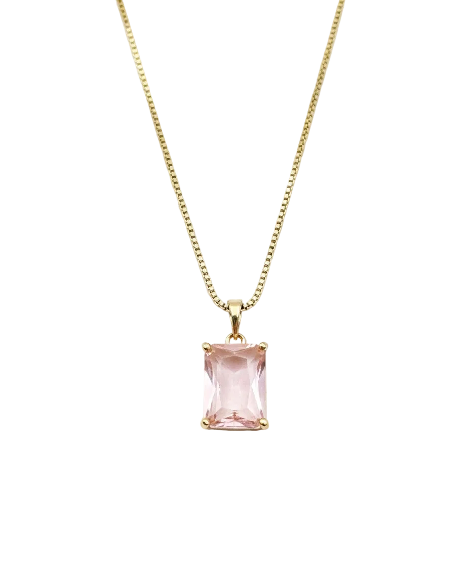 שרשרת ארוכה עם תליון של קריסטל בגוון ורדרד בצורת מלבן . השרשרת בציפוי ישראלי איכותי של זהב 24 קארט היפואלרגני. הפריט מגיע ארוז למתנה ועם אחריות לשנה. ניתן להוסיף ברכה אישית ופתק החלפה.