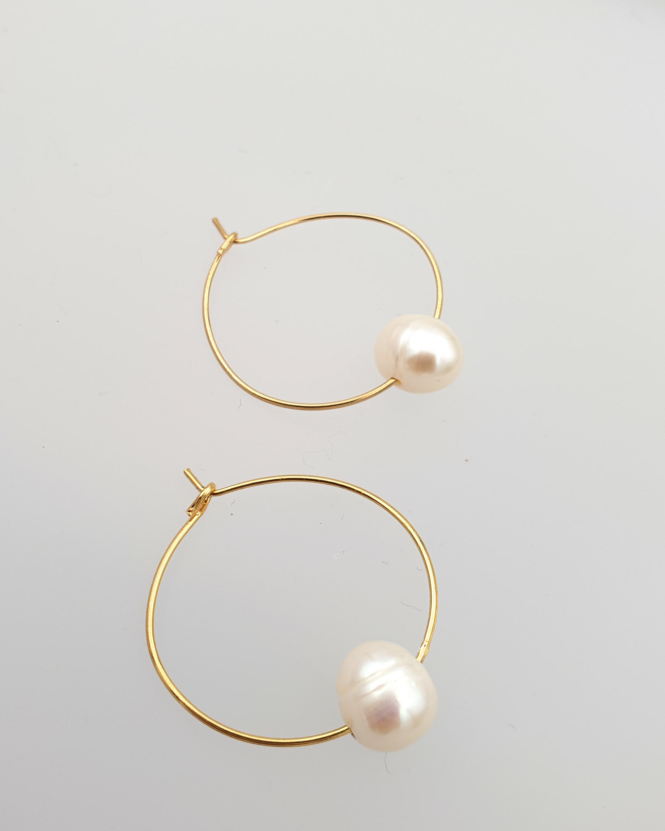 עגילי חישוק קלאסיים עם פנינה אמיתית אובלית. העגילים בציפוי ישראלי איכותי של זהב 24 קראט . תולה העגיל הינו היפו אלרגני. הפריט מגיע ארוז למתנה ועם אחריות לשנה. ניתן להוסיף ברכה אישית ופתק החלפה.