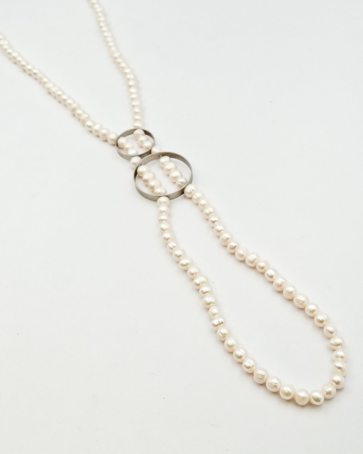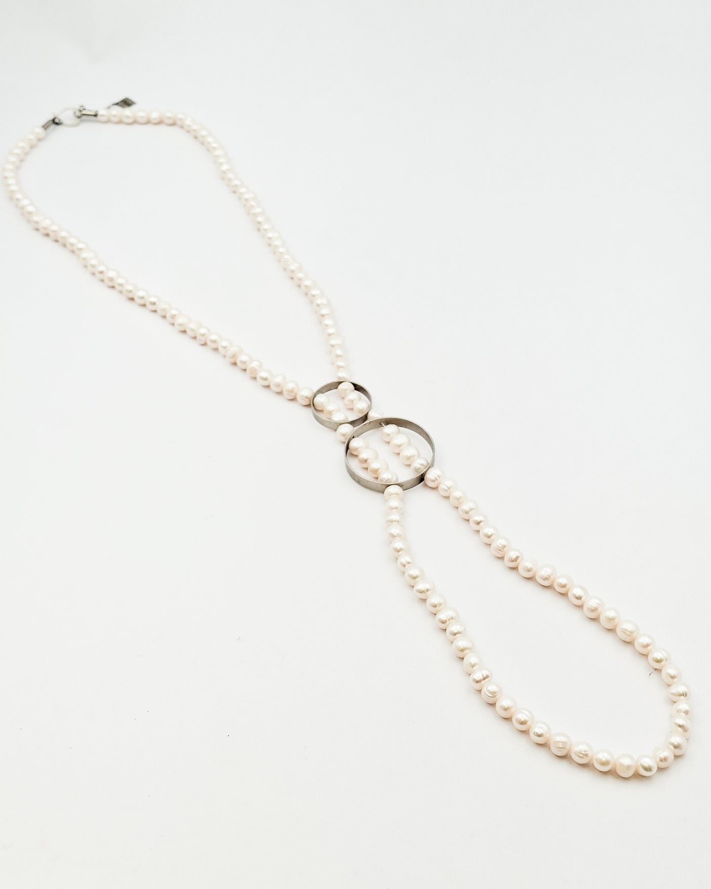 שרשרת עניבת פנינים אמתיות וחישוקים כסף