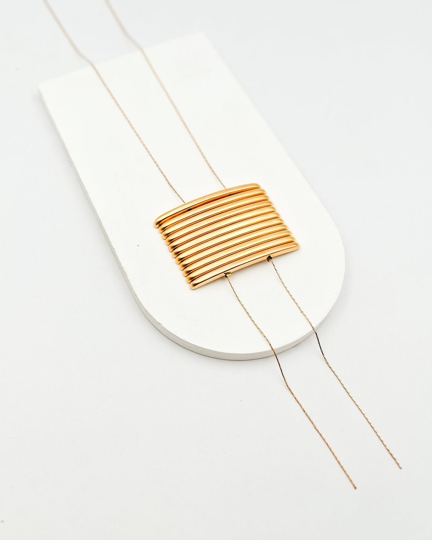 שרשרת בצורת עניבה עם אלמנטים מאוזנים ברוחב האלמנטים כ-4 או 6.5 ס"מ, לבחירתך, בציפוי ישראלי איכותי של זהב 24 קראט.