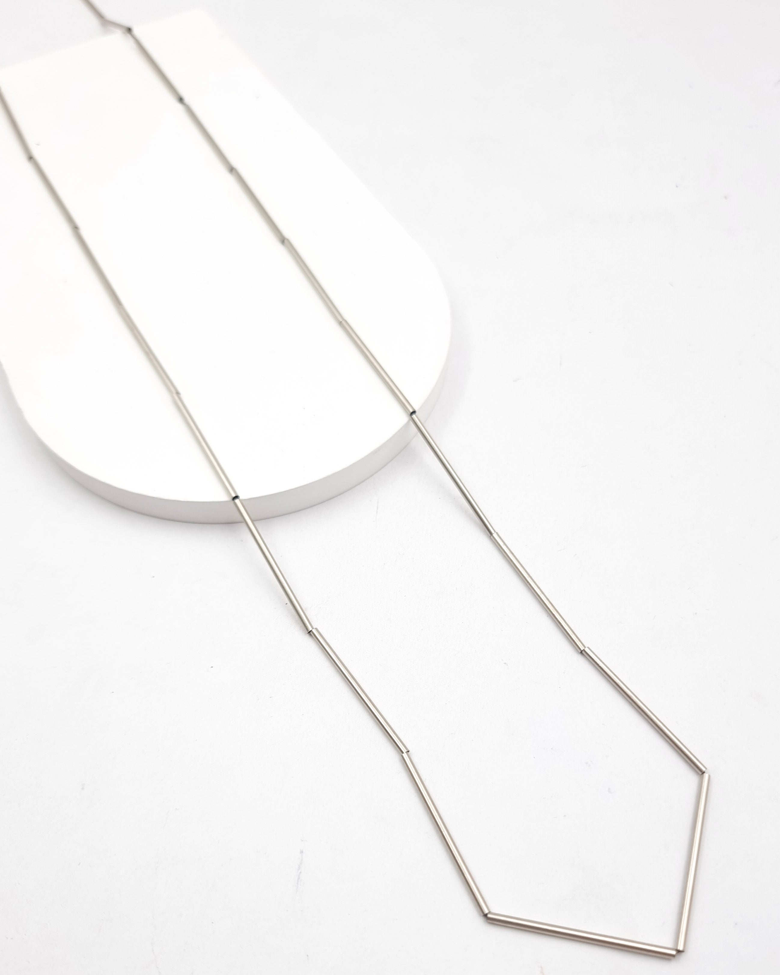 שרשרת ארוכה מחוט כותנה דק ועליה מושחלים אלמנטים בצורת צינורות דקיקים בציפוי ישראלי איכותי של כסף. ניתן לענוד ארוכה או מלופפת כצמיד או שרשרת קצרה. הפריט מגיע ארוז למתנה ועם אחריות לשנה. ניתן להוסיף ברכה אישית ופתק החלפה.