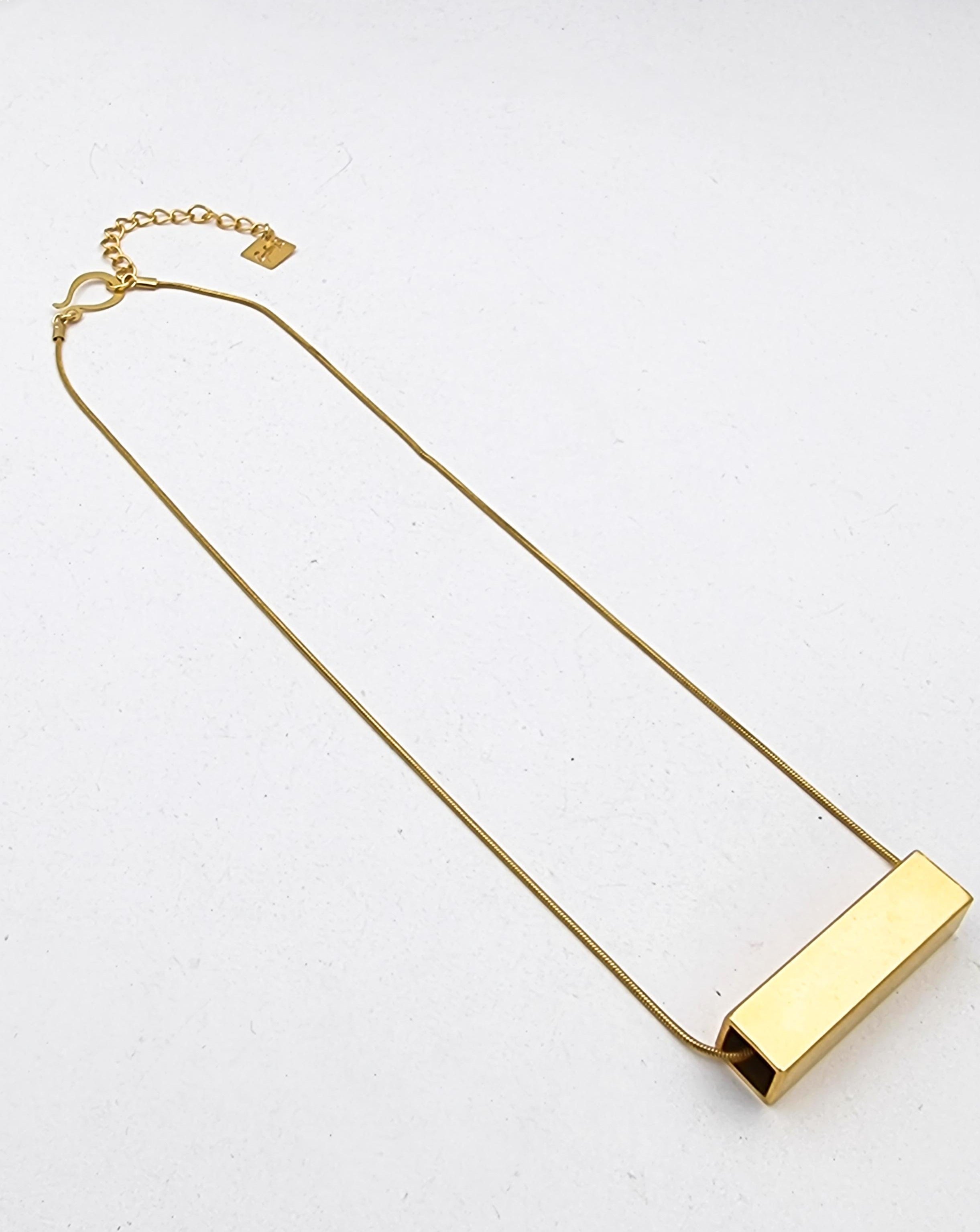 שרשרת קצרה ועליה מושחל תליון בצורת צינור מלבני . ניתן לענוד את השרשרת כבודדת ואפשר לשלב עם עוד שרשראות. השרשרת בציפוי ישראלי איכותי של זהב 24 קראט. הפריט מגיע ארוז למתנה ועם אחריות לשנה. ניתן להוסיף ברכה אישית ופתק החלפה.
