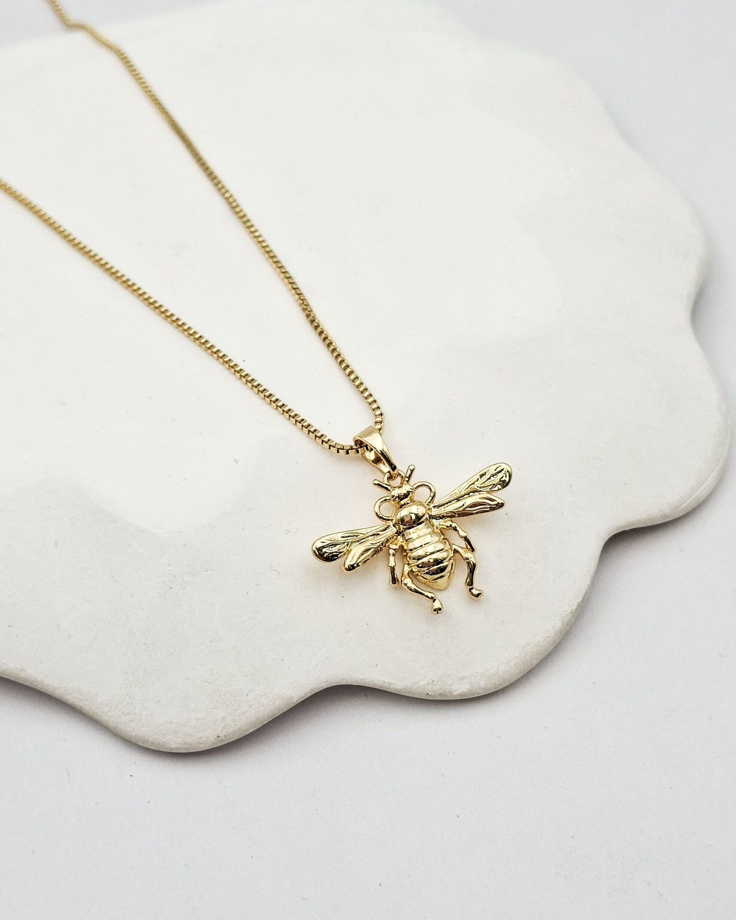 שרשרת קצרה בציפוי איכותי ישראלי והיפואלרגני של זהב 24 קראט עם תליון בצורת זבוב